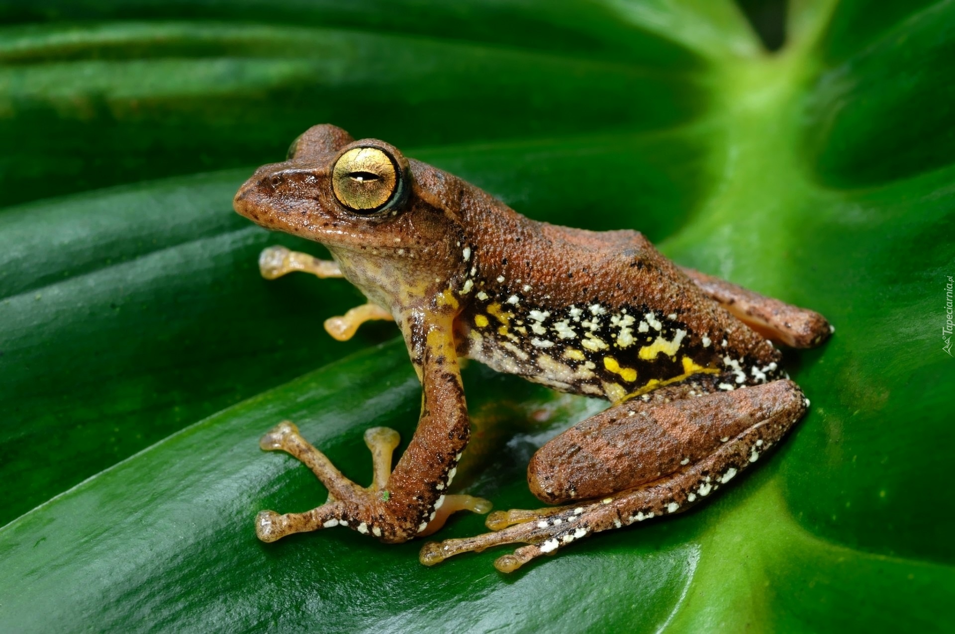 Edytor tapety: Żaba na zielonym liściu