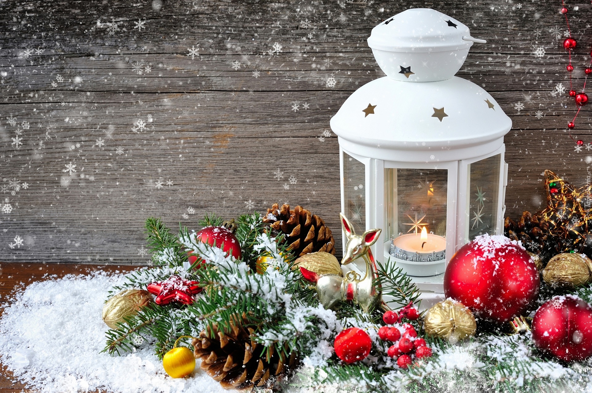 Edytor tapety: Lampion pośród dekoracji świątecznych