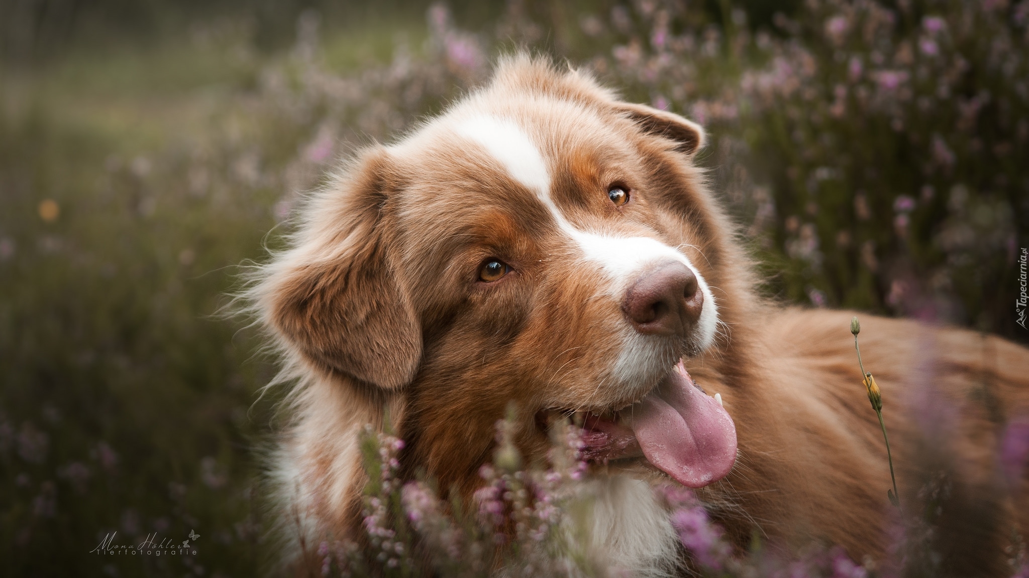 Edytor tapety: Owczarek australijski z wystawionym językiem
