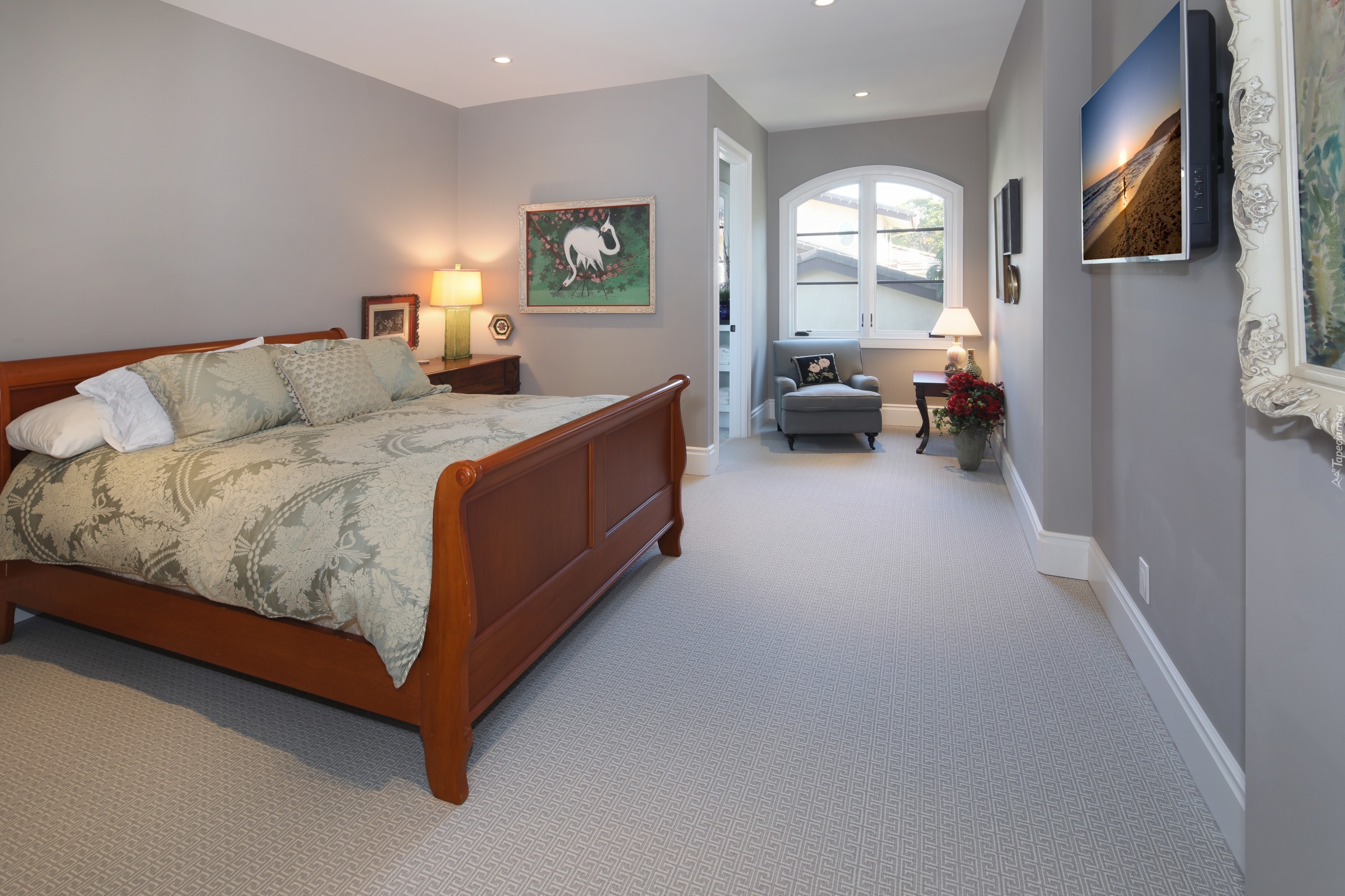 Edytor tapety: Sypialnia z telewizorem i obrazami