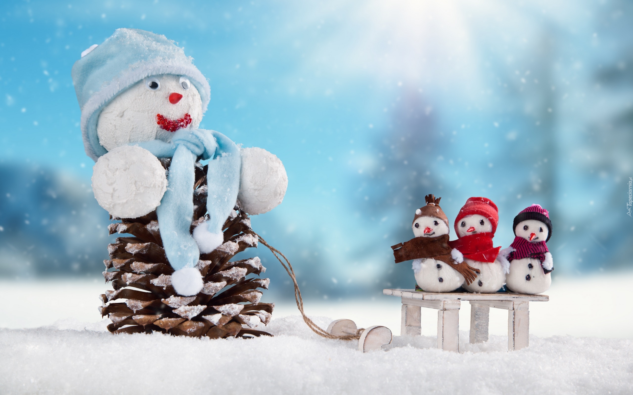 Edytor tapety: Bałwanki na sankach