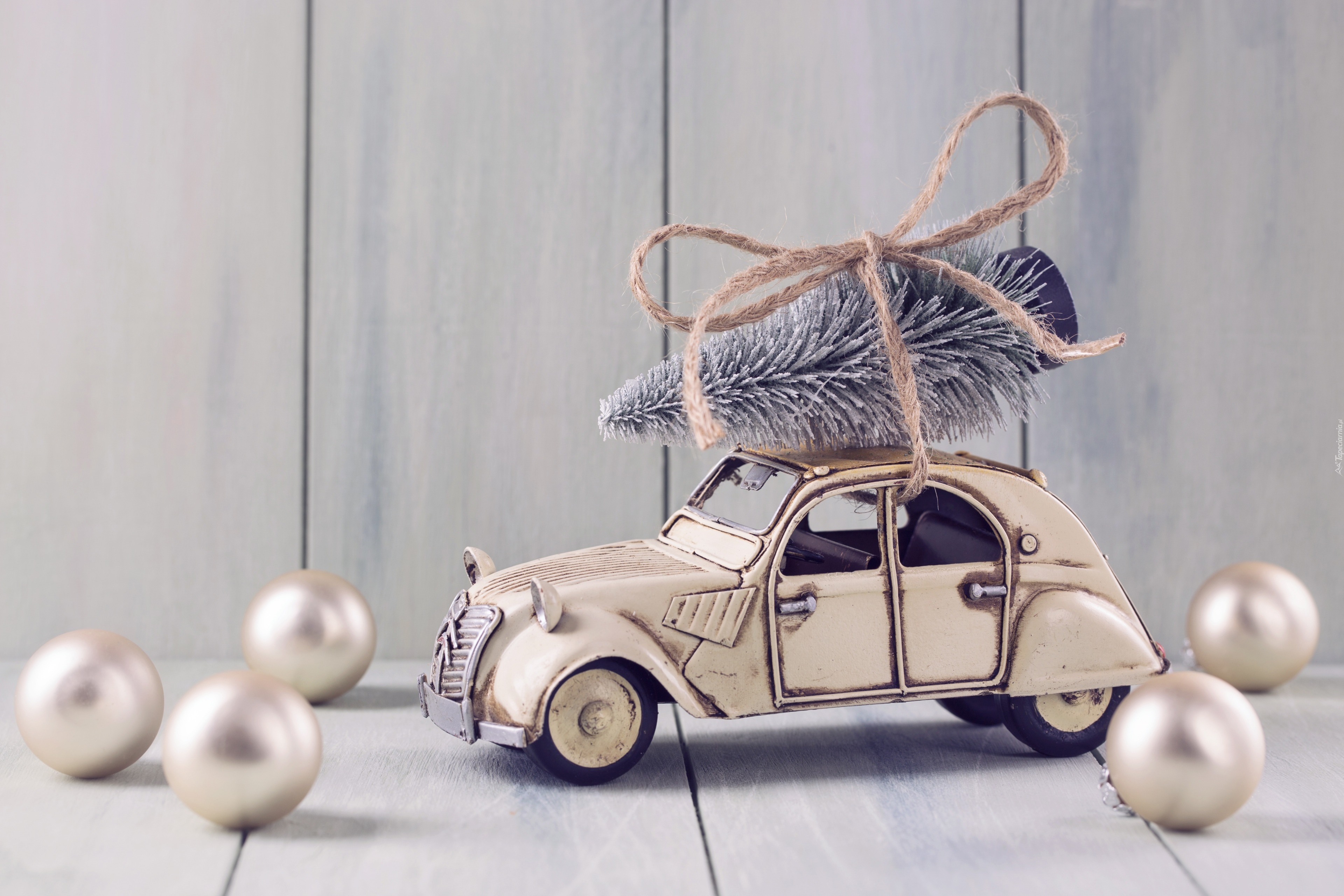 Edytor tapety: Autko z choinką i bombki