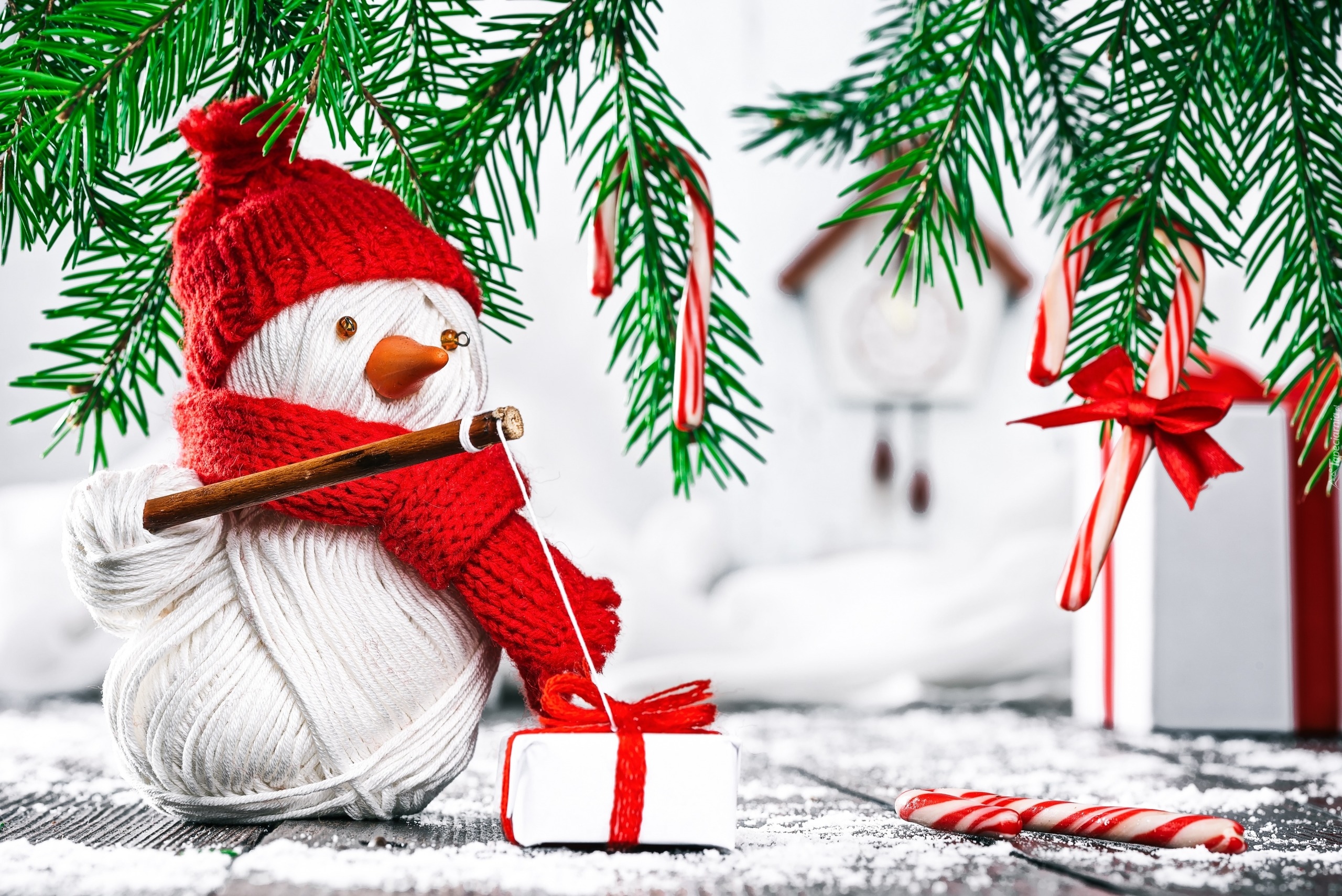 Edytor tapety: Świąteczna kompozycja z bałwankiem i słodyczami