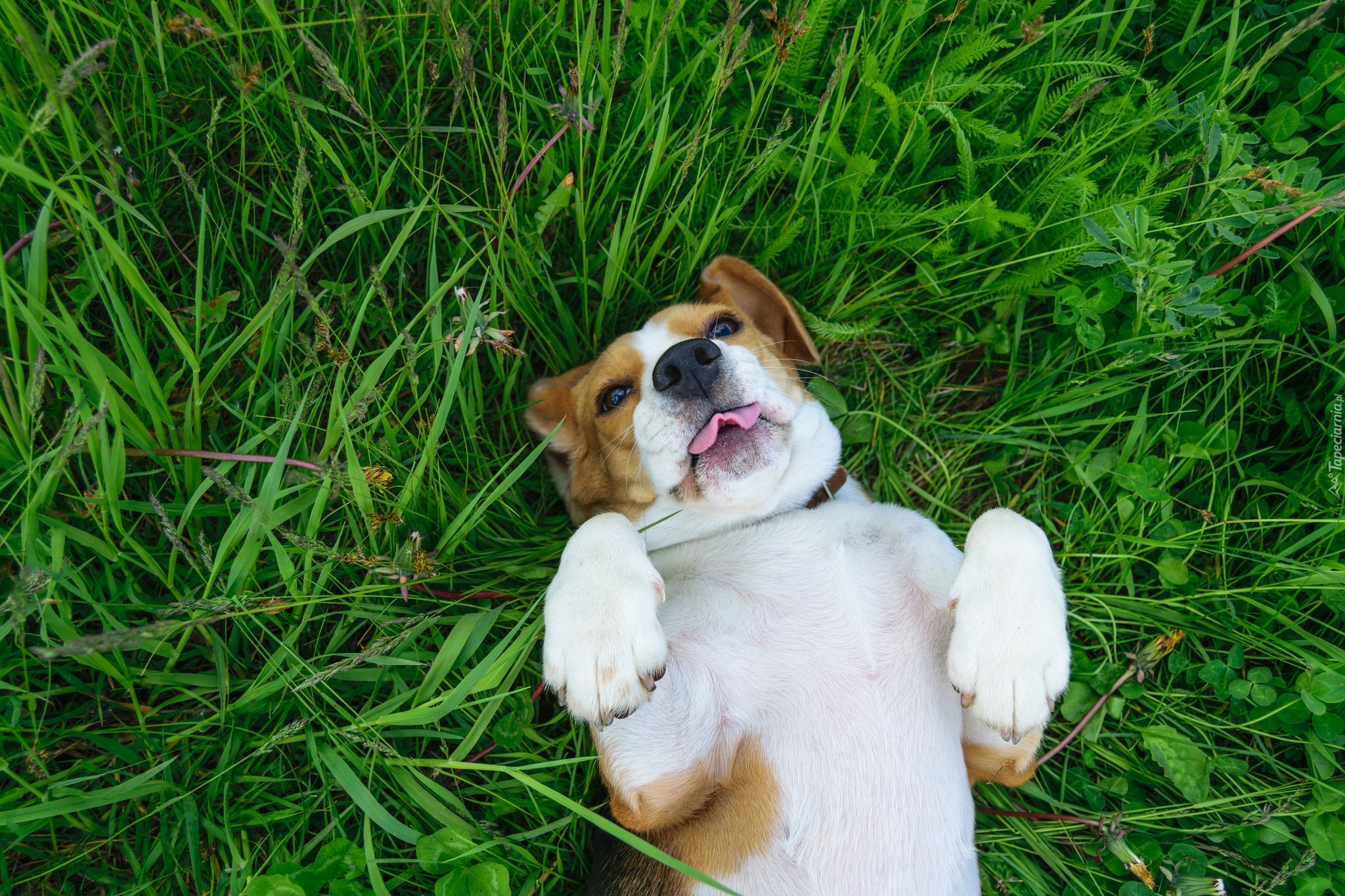 Edytor tapety: Beagle leży na trawie