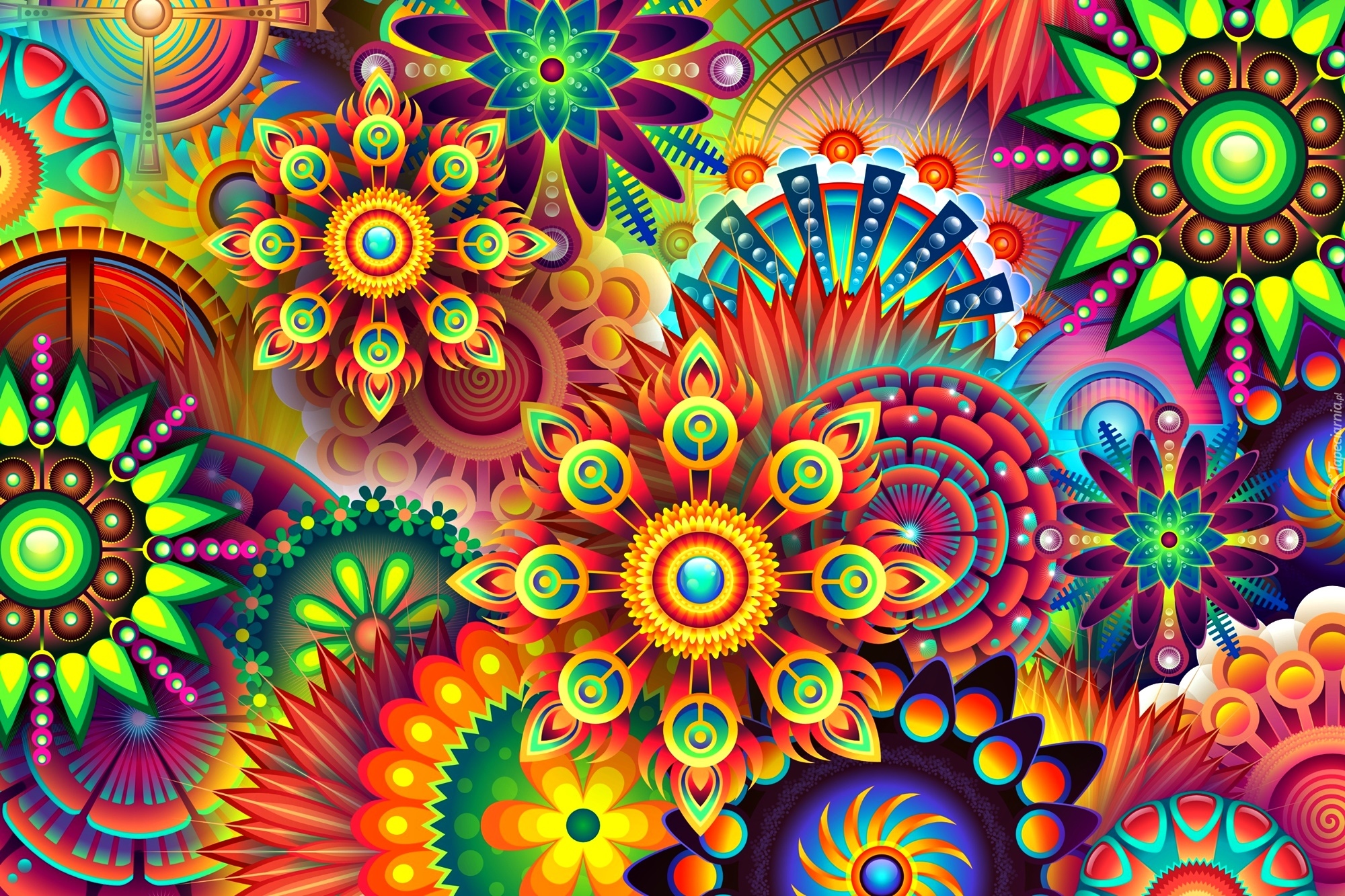Edytor tapety: Kolorowe graficzne kwiaty w teksturze