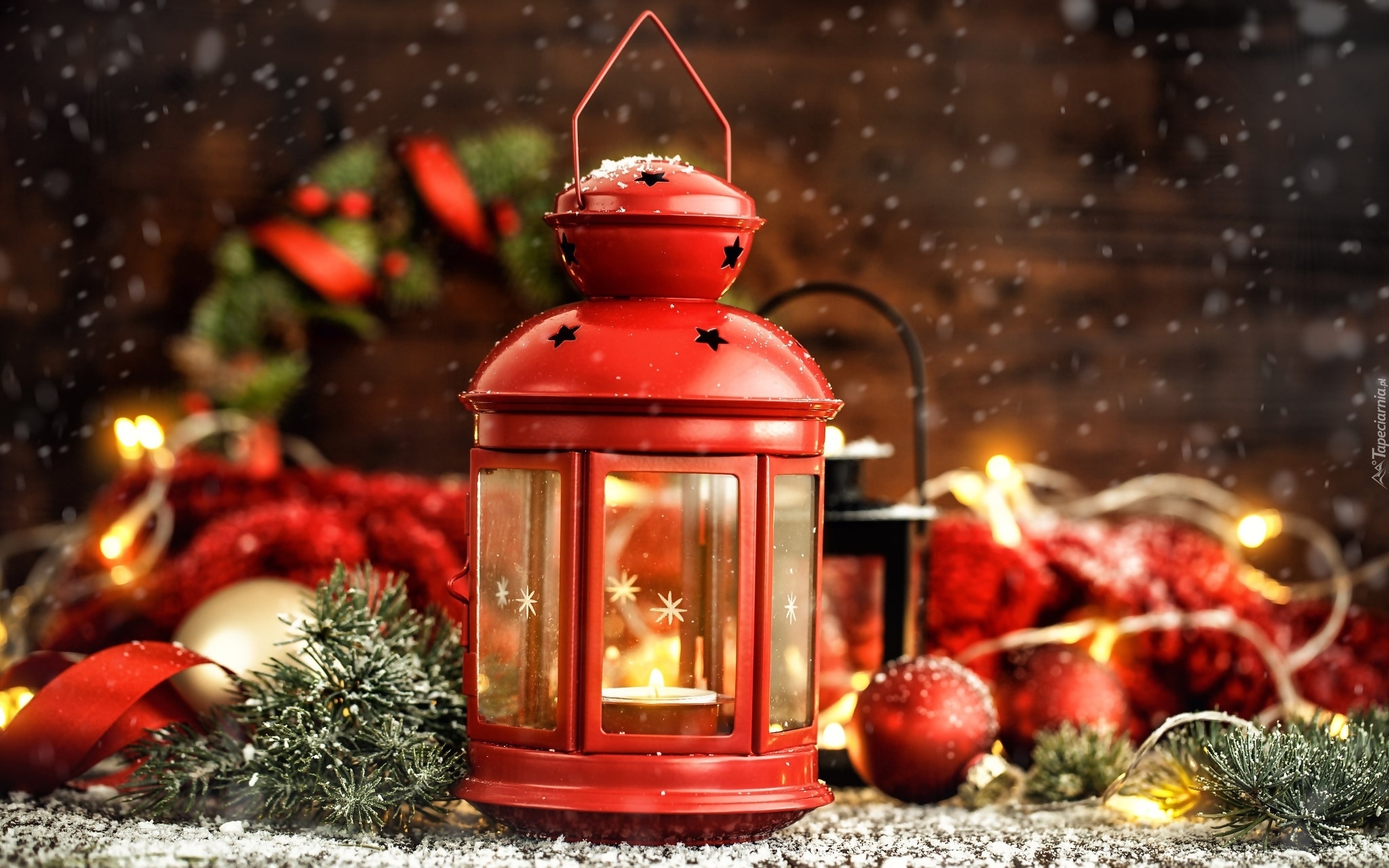 Edytor tapety: Czerwony lampion pośród świątecznych ozdób