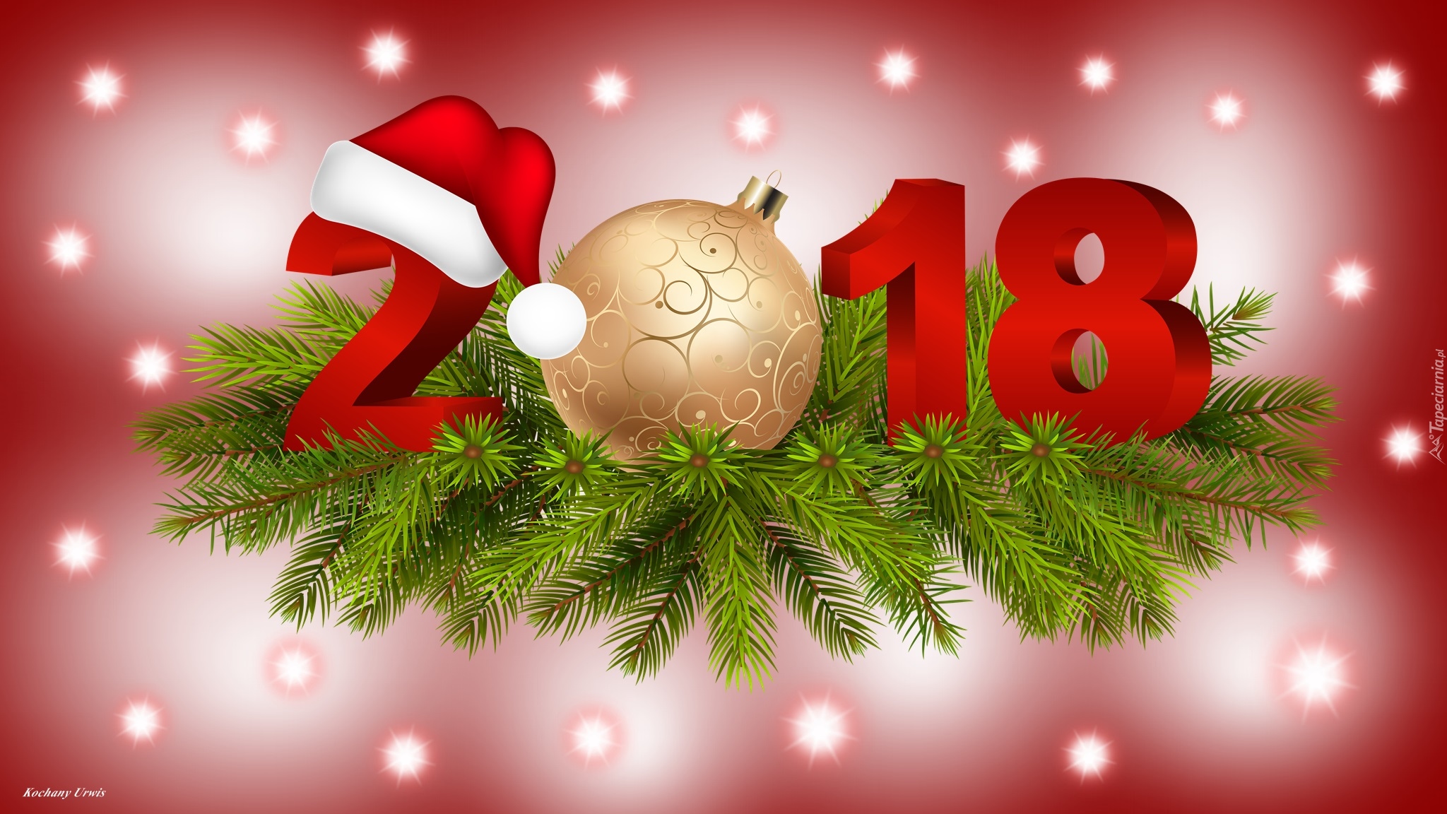 Edytor tapety: Nowy Rok 2018 w czapce Mikołaja na gałązkach