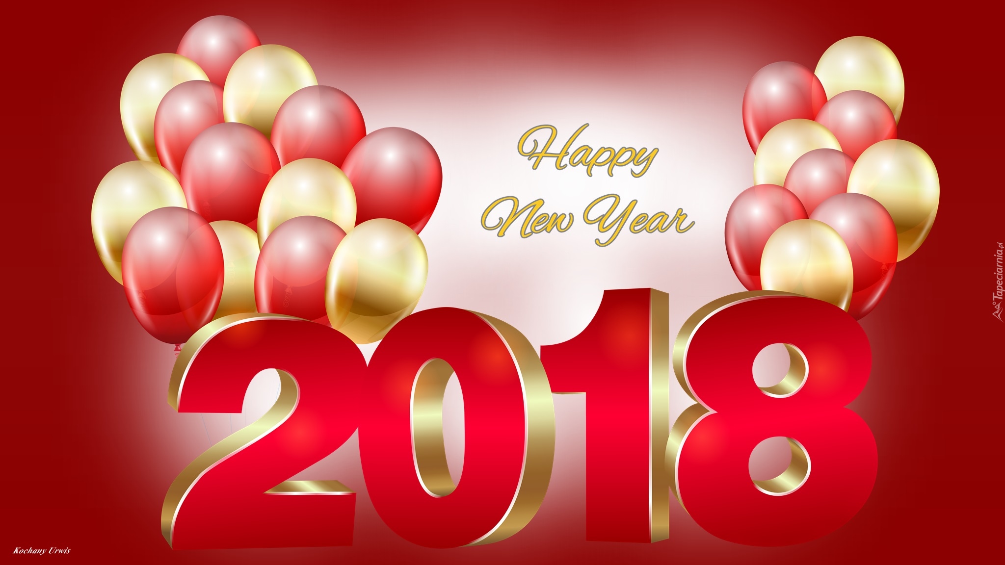 Edytor tapety: Życzenia na Nowy Rok 2018 z balonikami
