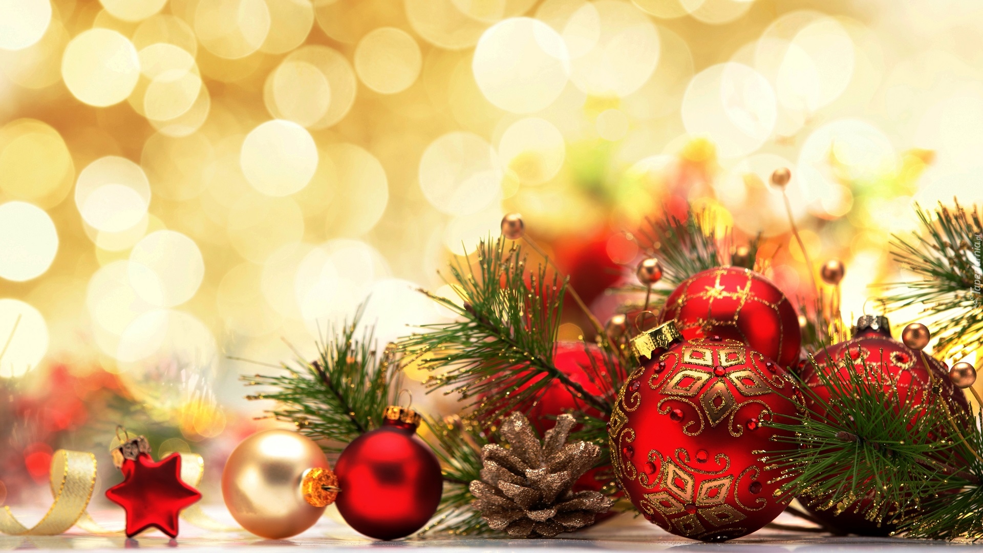 Edytor tapety: Bombki i szyszki z gałązkami w świątecznej kompozycji