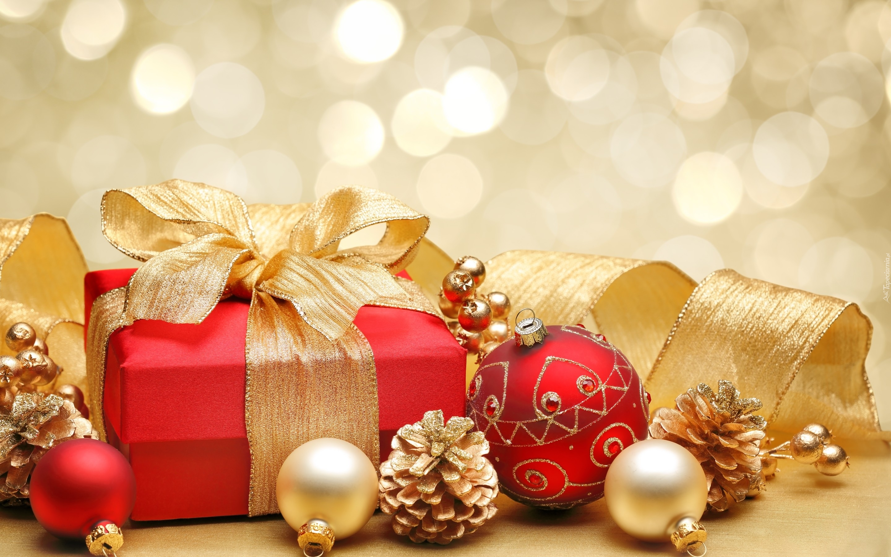 Edytor tapety: Kolorowe bombki przy prezencie