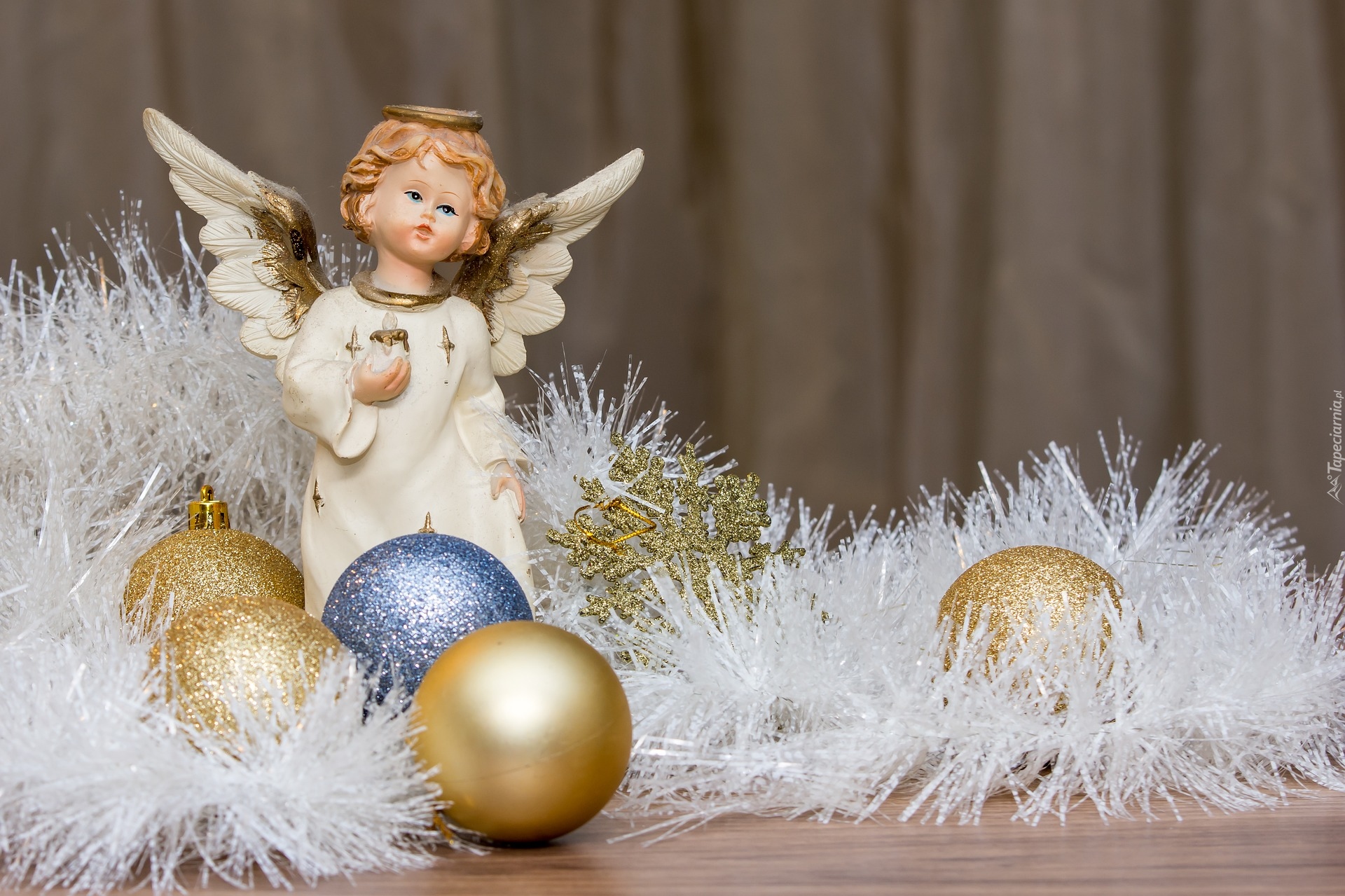 Edytor tapety: Figurka aniołka w dekoracji świątecznej