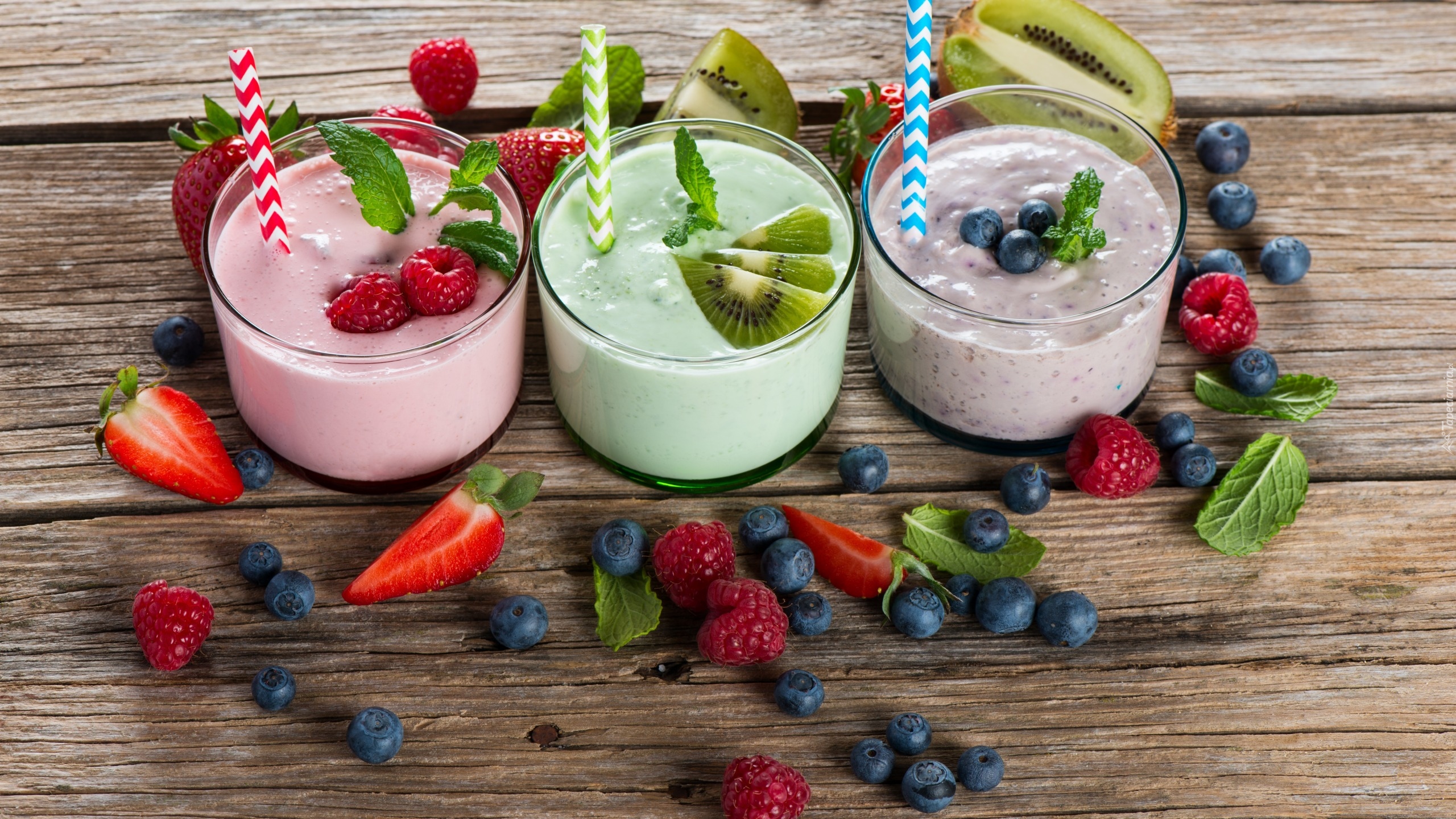 Edytor tapety: Koktajle owocowe w szklankach