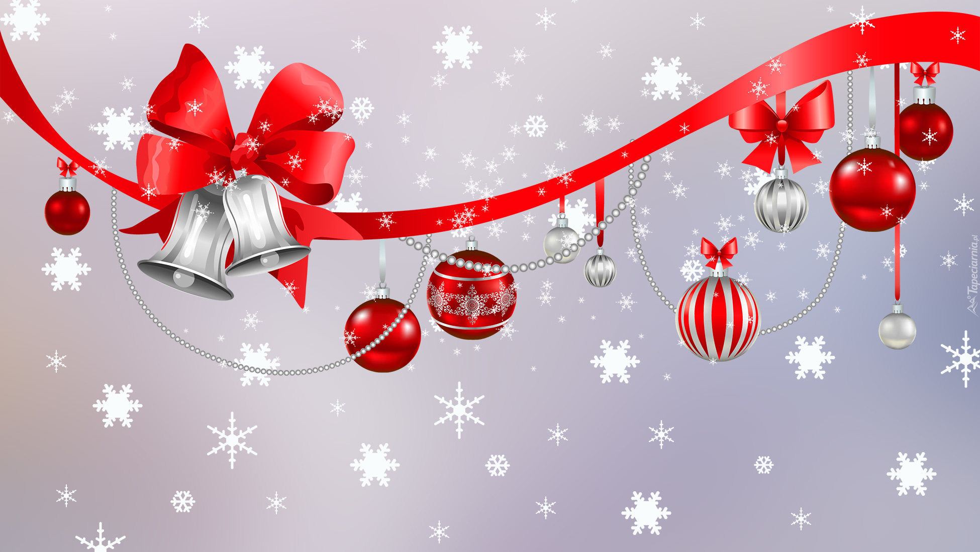 Edytor tapety: Świąteczna dekoracja z bombkami i dzwoneczkami