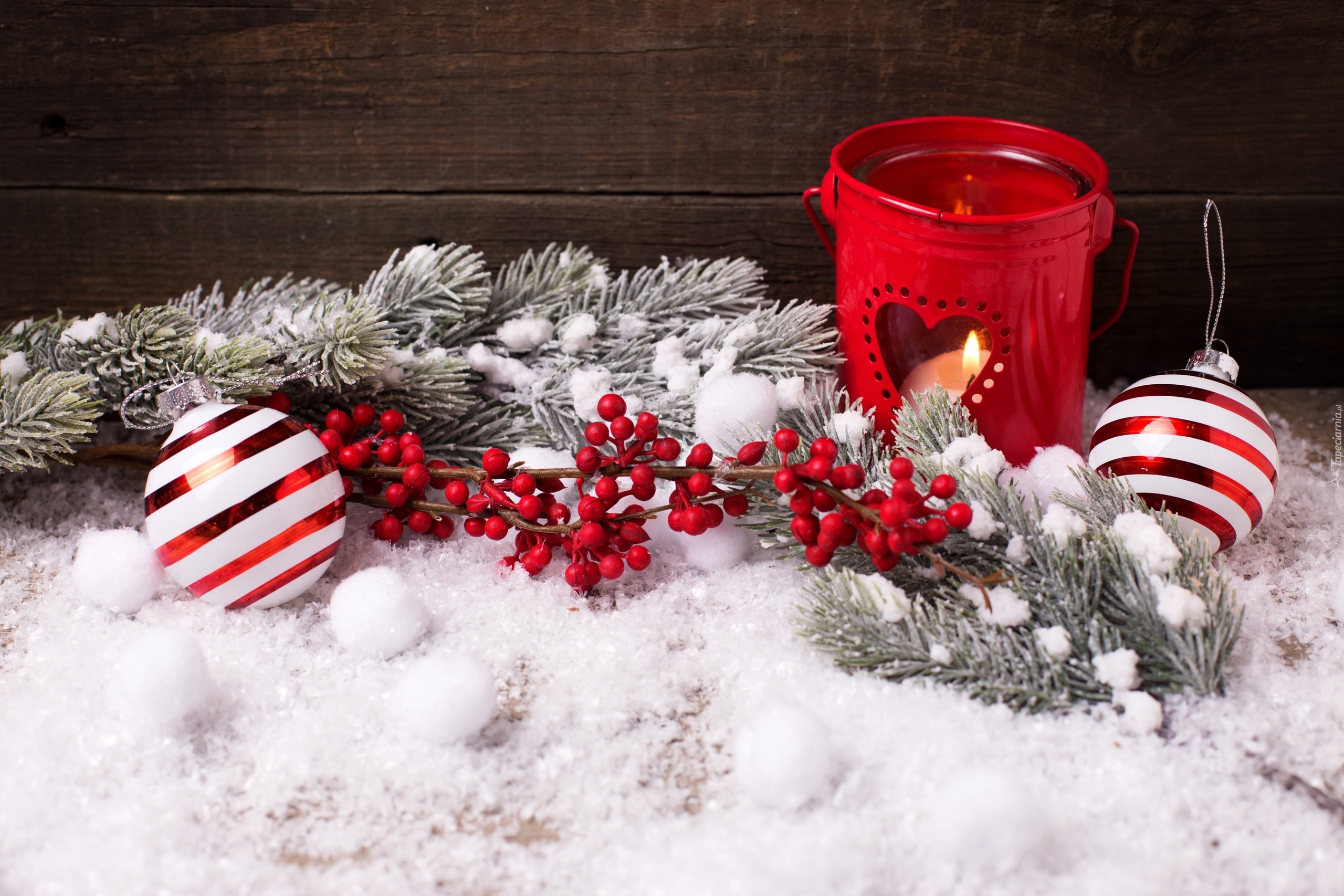 Edytor tapety: Bombki i lampion w świątecznej dekoracji