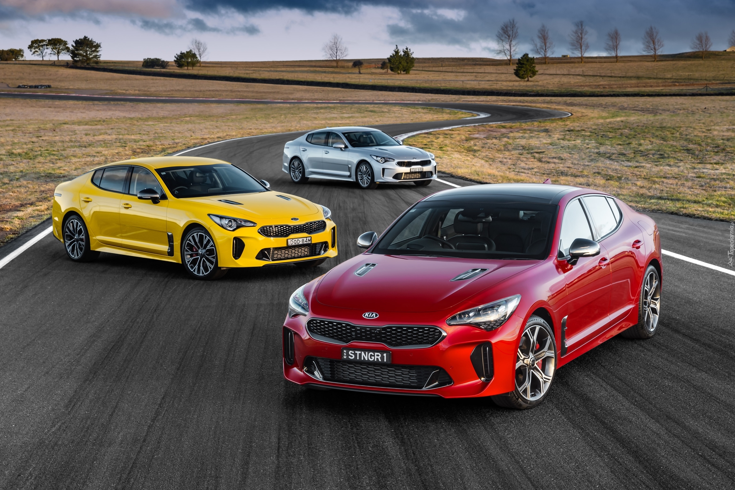 Edytor tapety: Trzy samochody Kia Stinger 2017