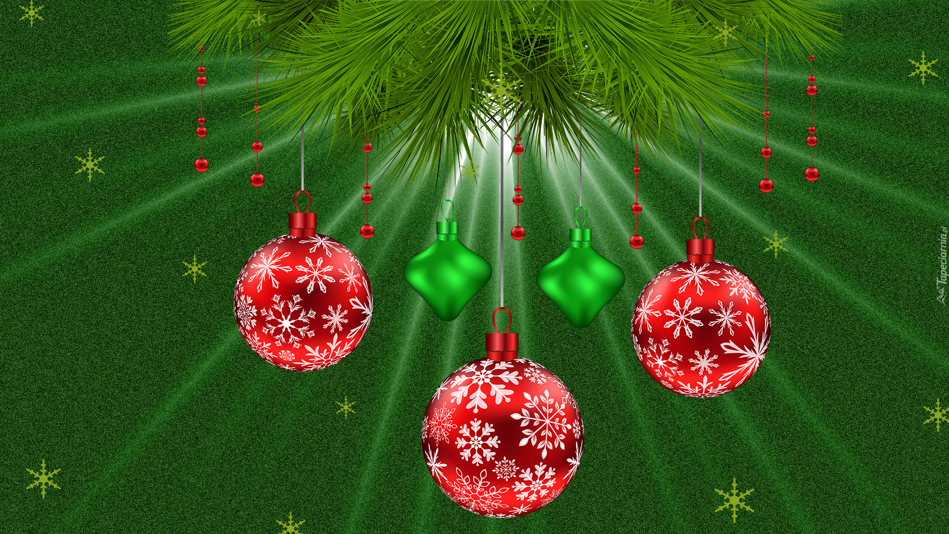 Edytor tapety: Bombki zawieszone na sosnowej gałązce