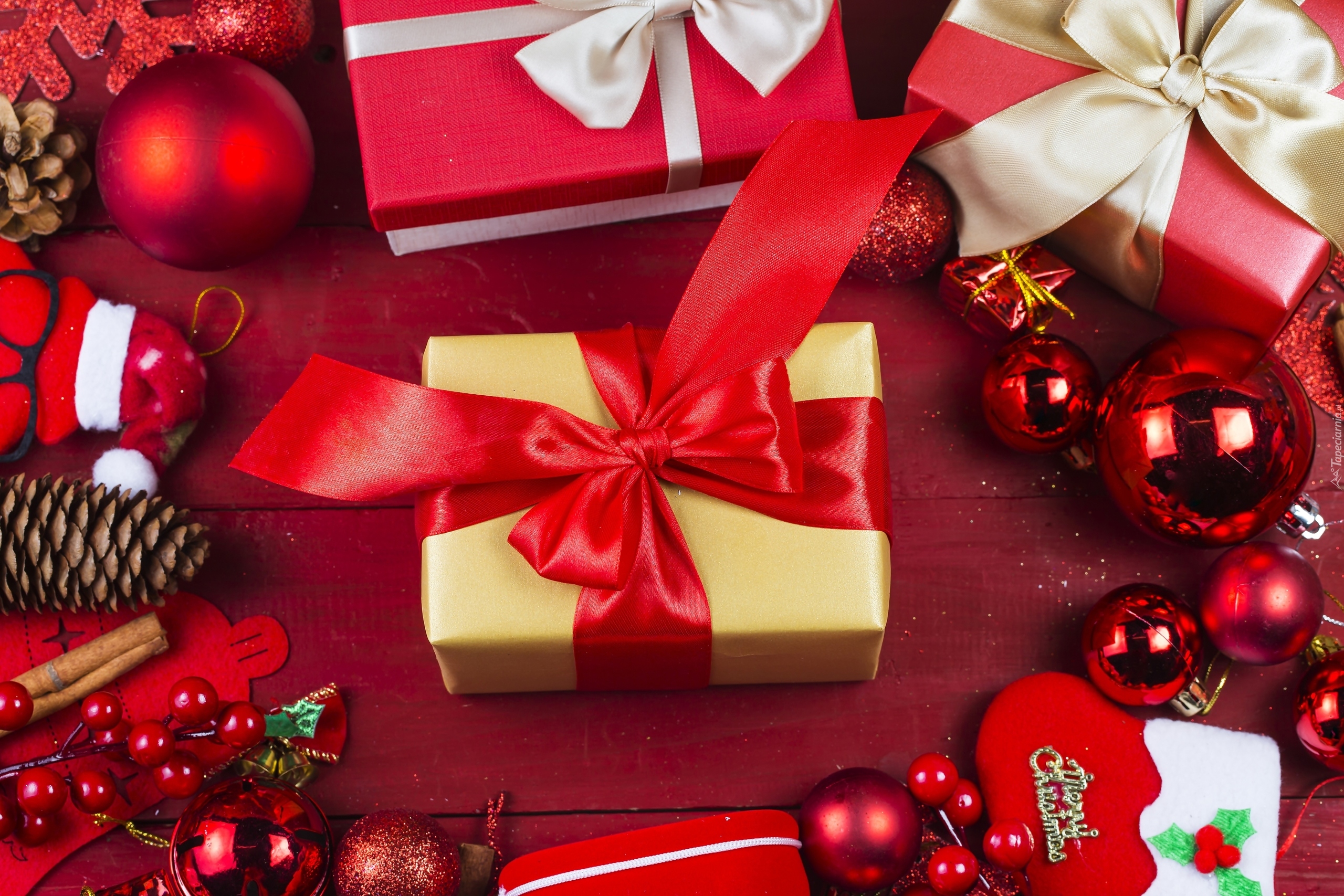 Edytor tapety: Prezenty świąteczne przewiązane wstążkami