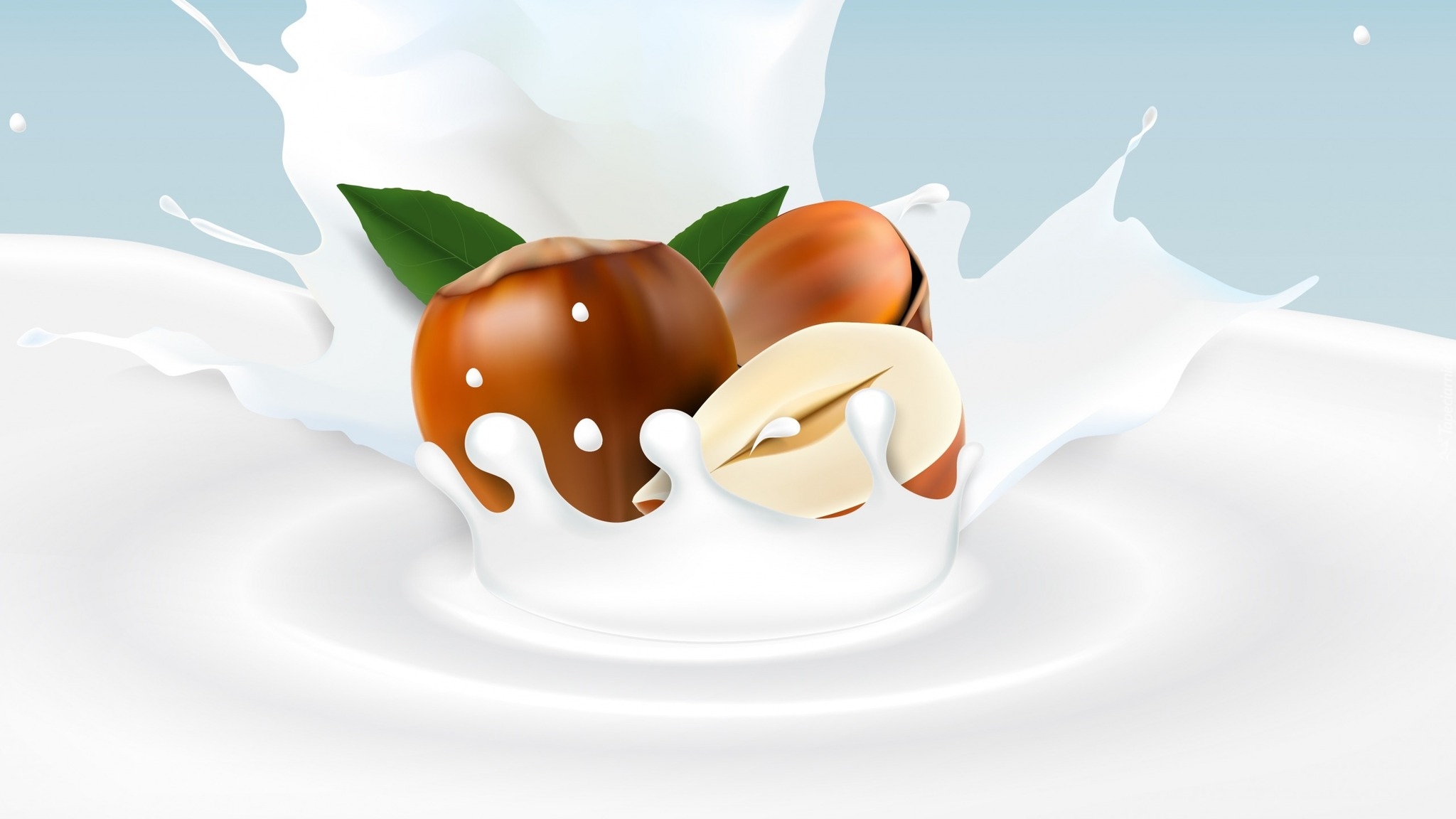 Edytor tapety: Orzechy laskowe wpadające do mleka