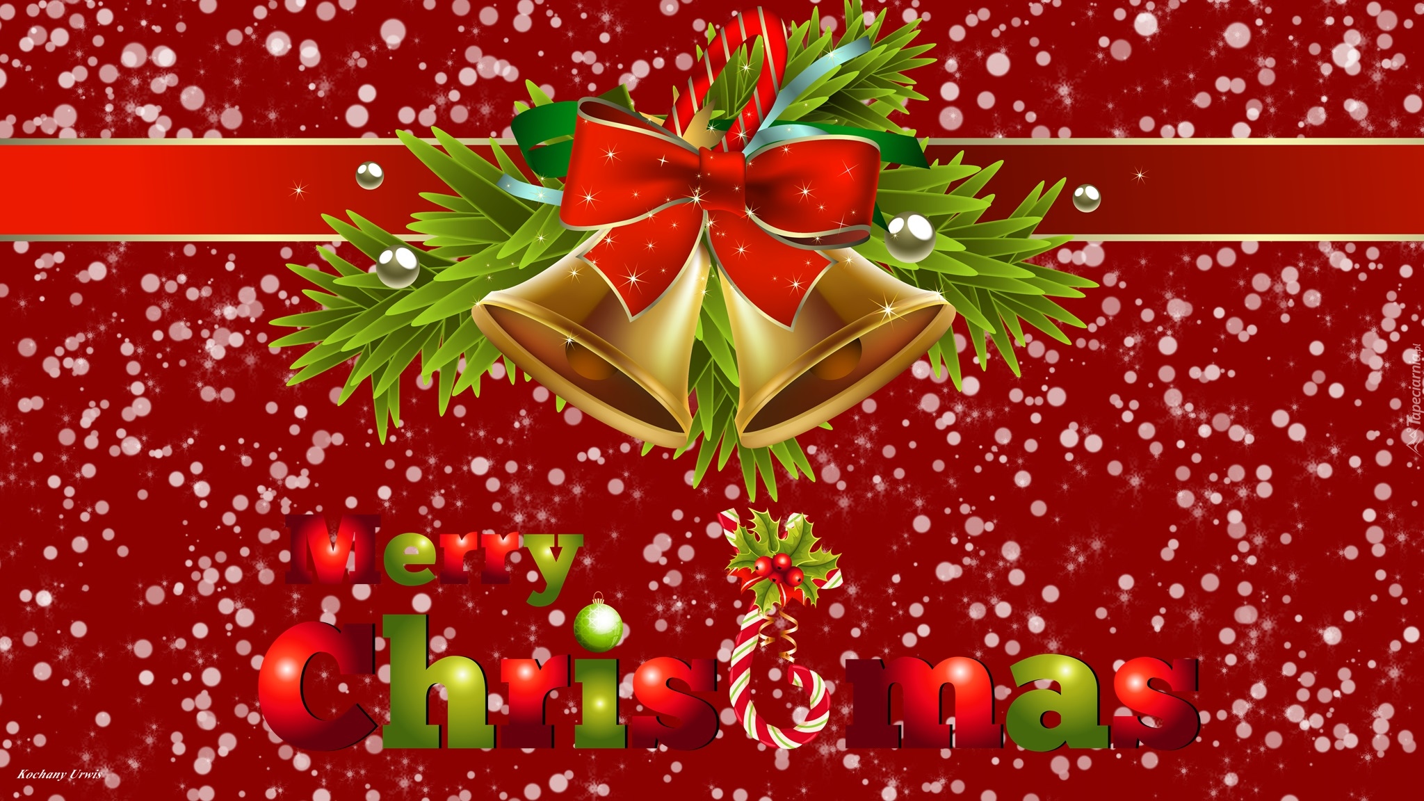 Edytor tapety: Dzwoneczki na gałązkach w świątecznej grafice