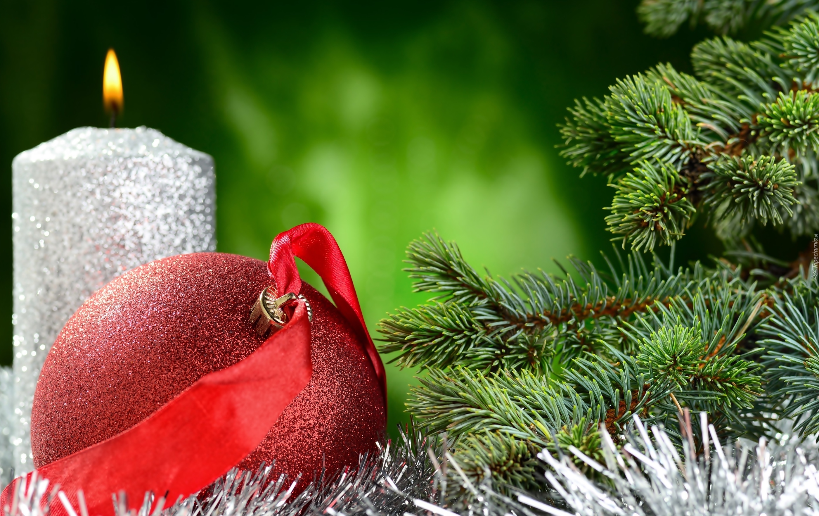 Edytor tapety: Płonąca świeca obok bombki