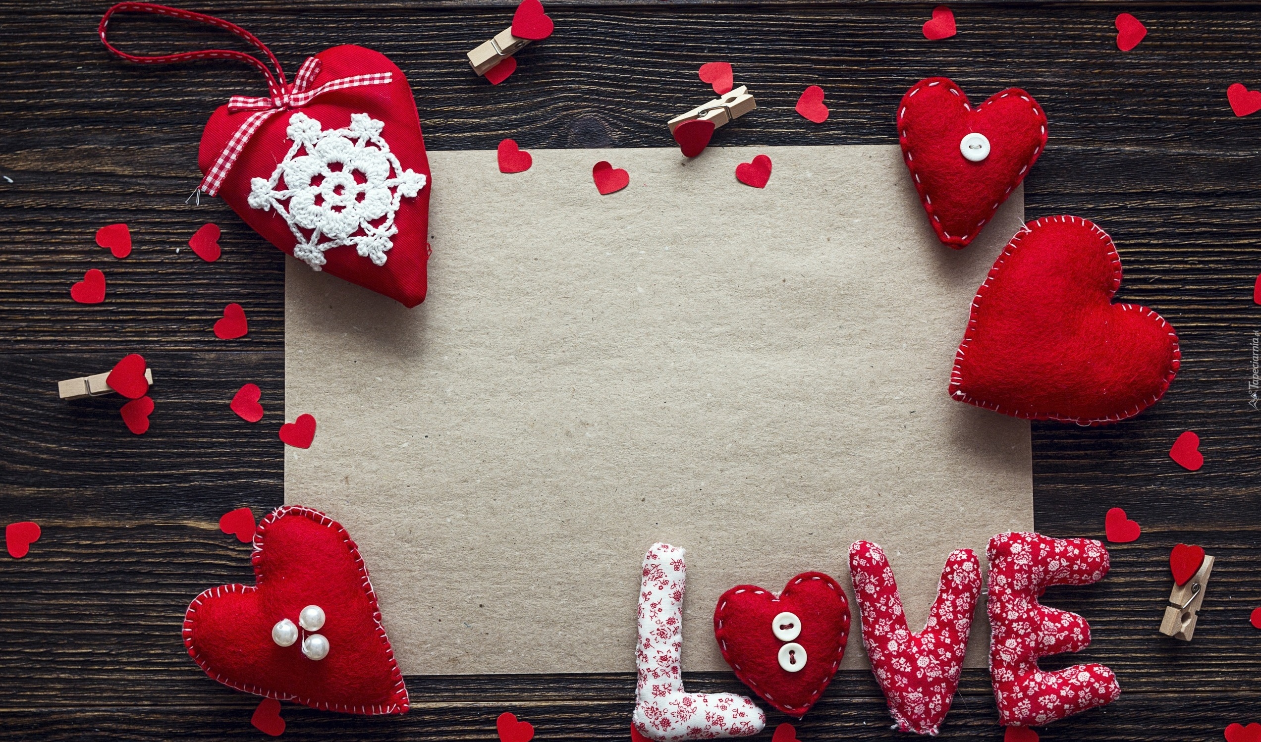 Edytor tapety: Napis Love i serca z materiału