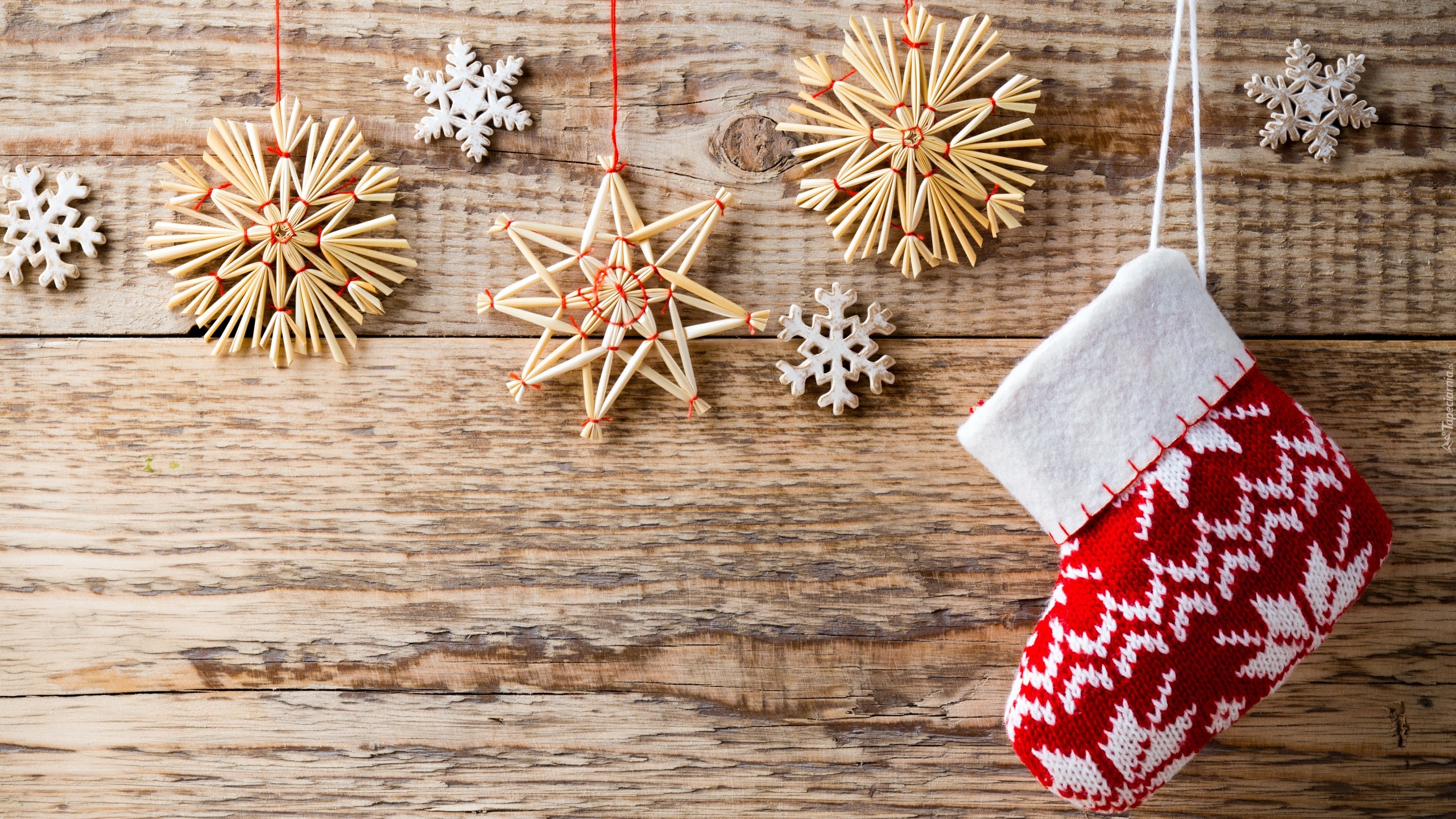 Edytor tapety: Słomiane ozdoby i skarpeta w dekoracji na sznurku