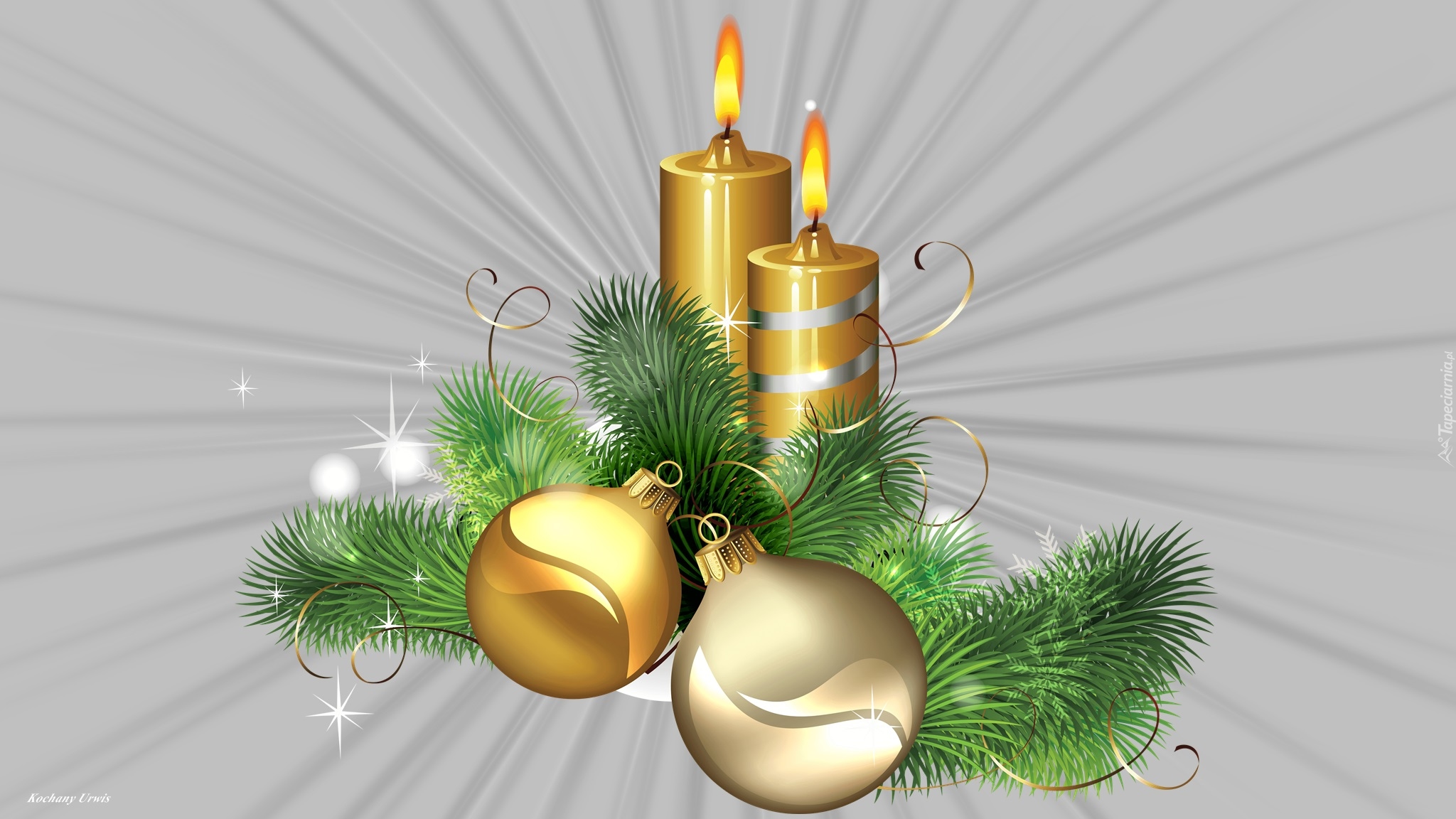 Edytor tapety: Grafika bożonarodzeniowa ze świecą i bombkami