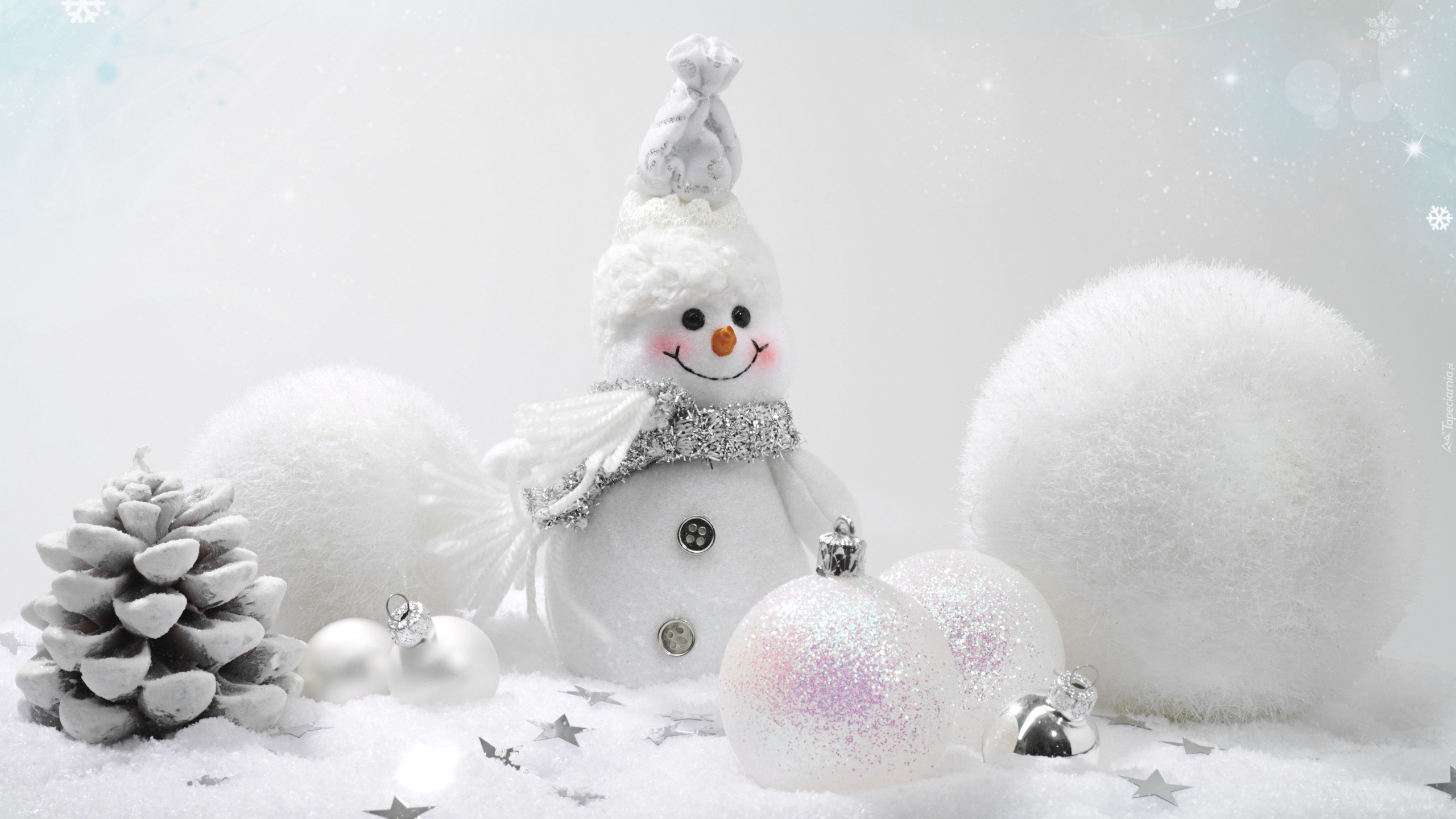 Edytor tapety: Bałwanek i bombki na śniegu