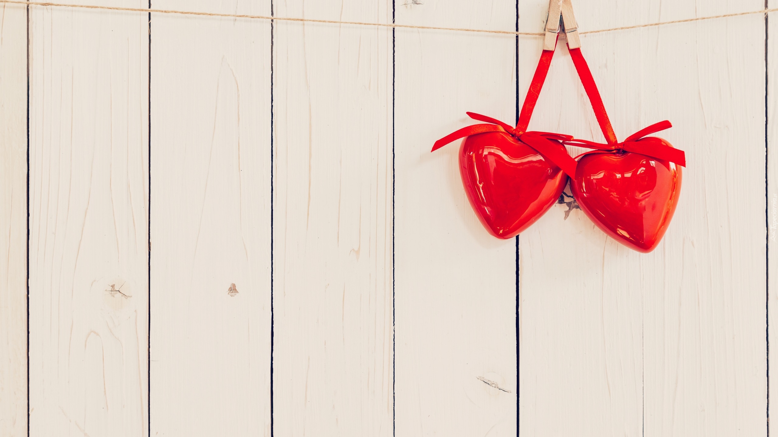 Edytor tapety: Serca przypięte klamerkami do sznurka