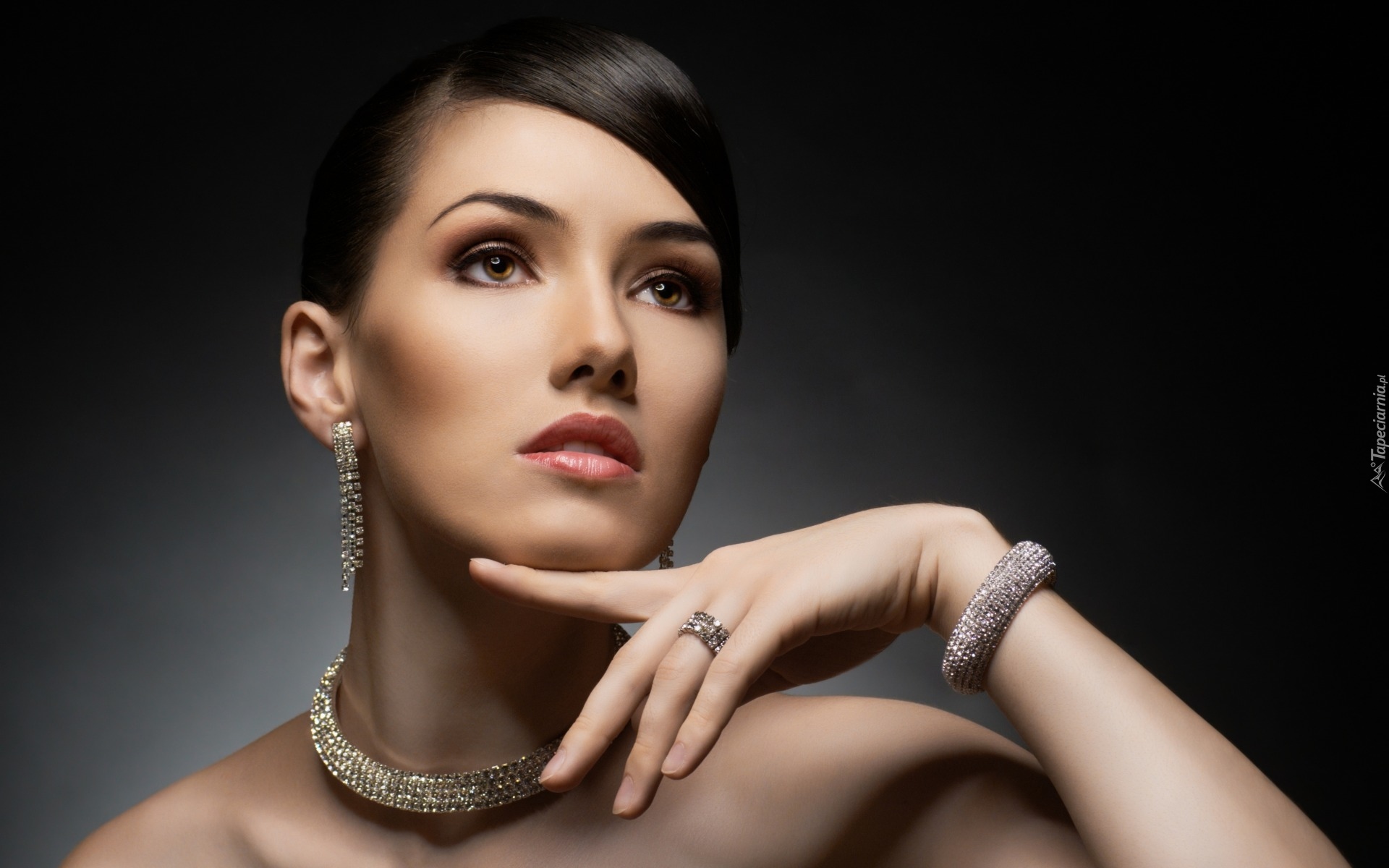 Edytor tapety: Zamyślona kobieta w biżuterii