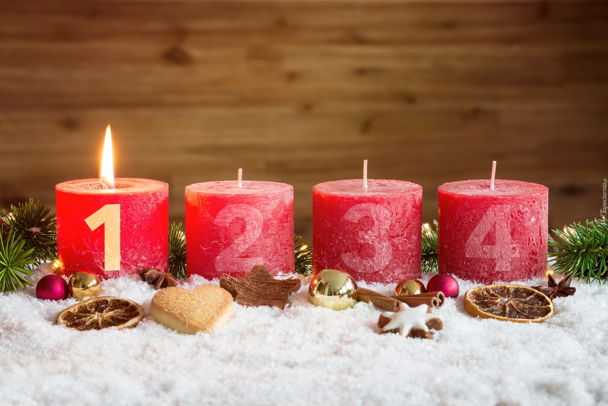 Edytor tapety: Świece adwentowe ustawione na śniegu
