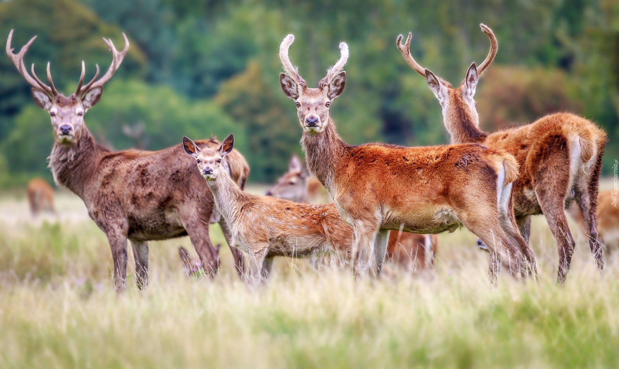 Edytor tapety: Stado jeleni na łące