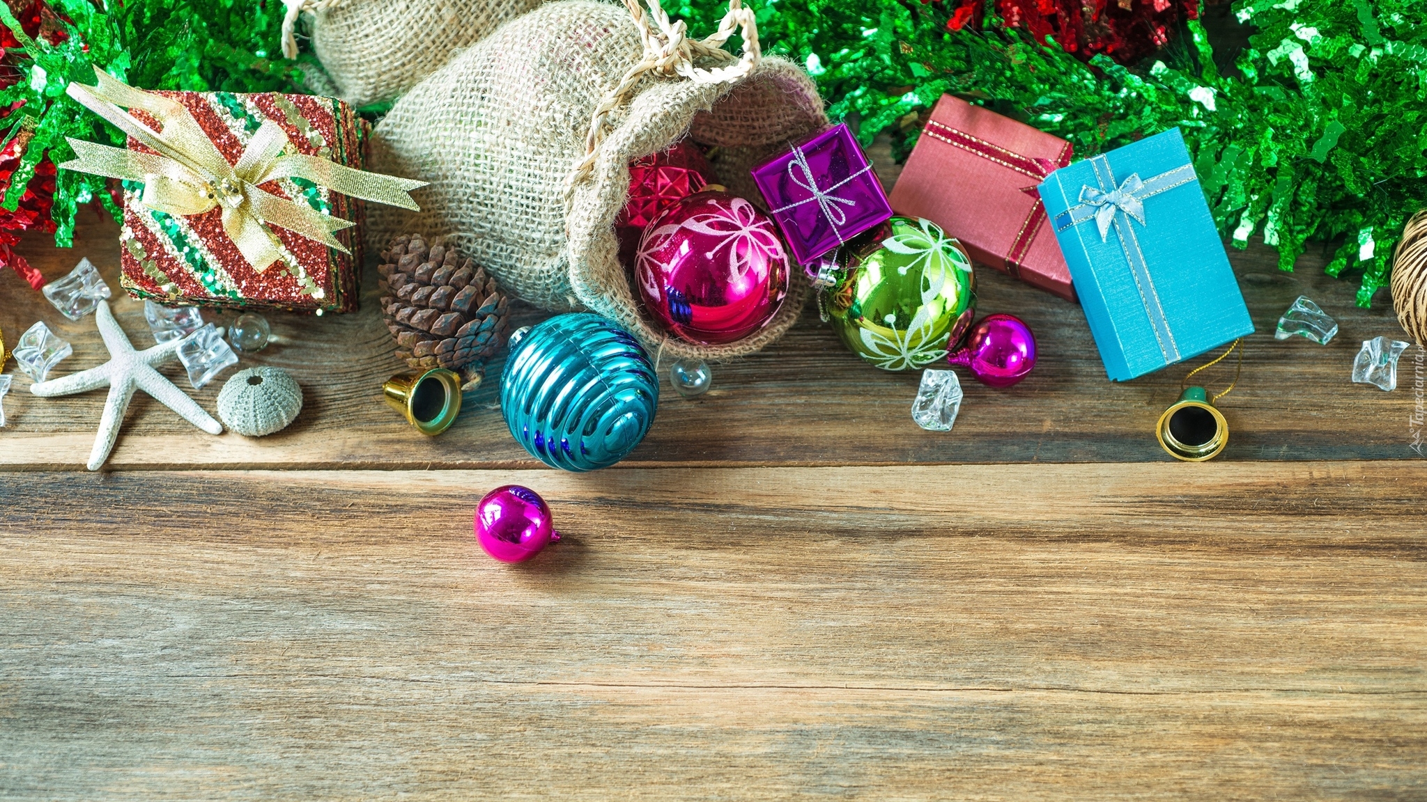 Edytor tapety: Worek z prezentami i bombkami