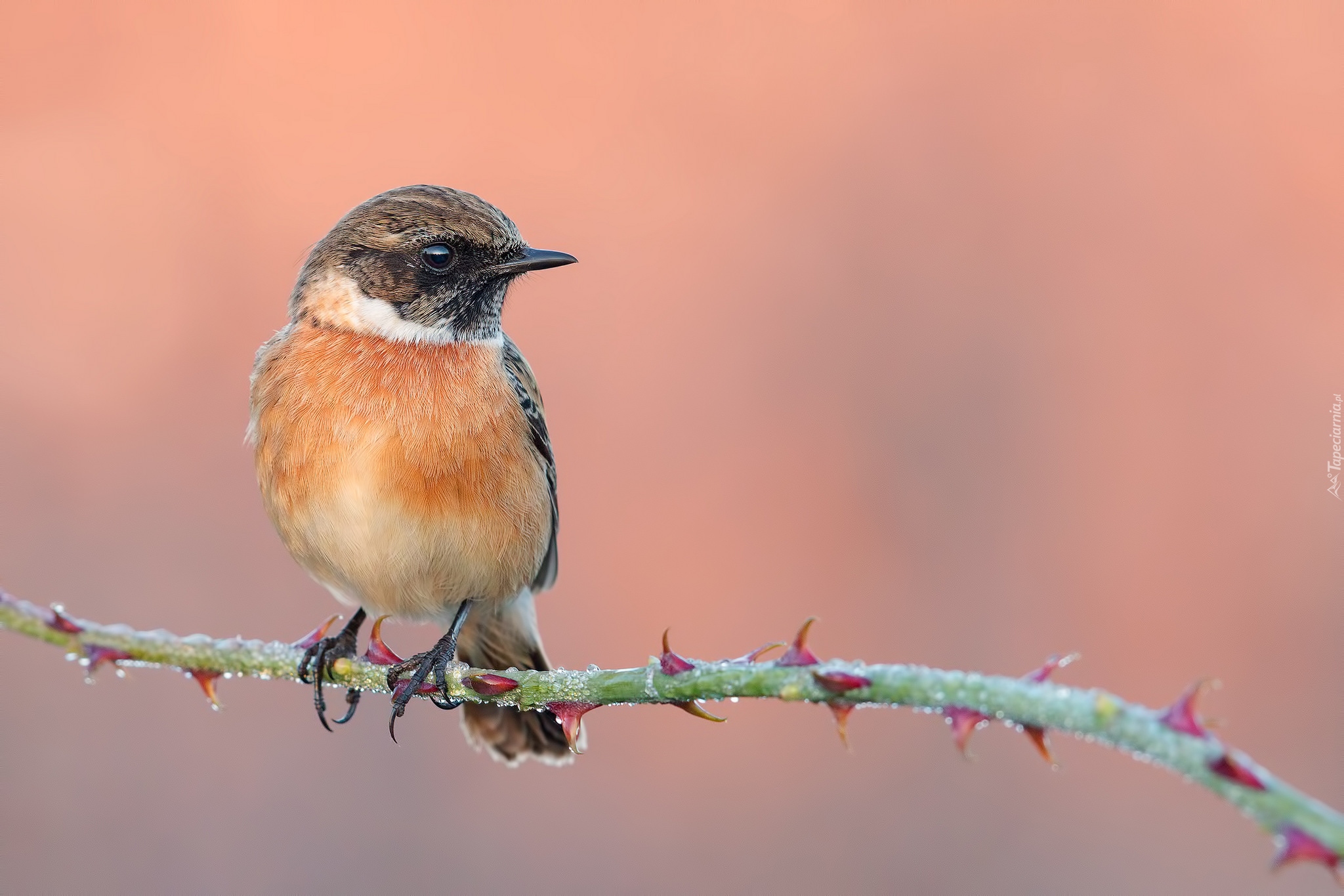 Edytor tapety: Kląskawka na gałązce z kolcami