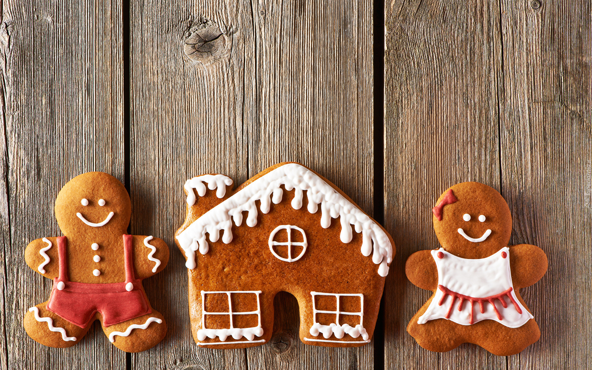 Edytor tapety: Ludziki i domek z piernika na deskach