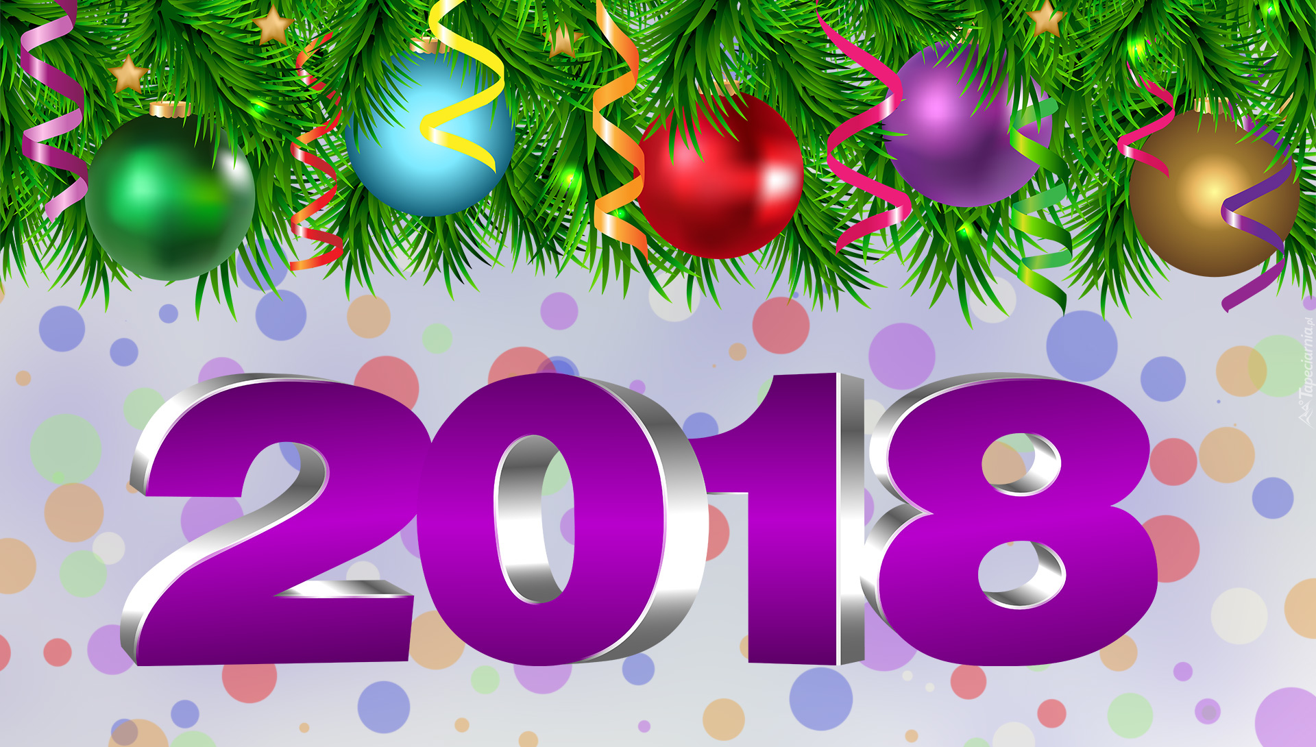 Edytor tapety: Kolorowe bombki nad rokiem 2018