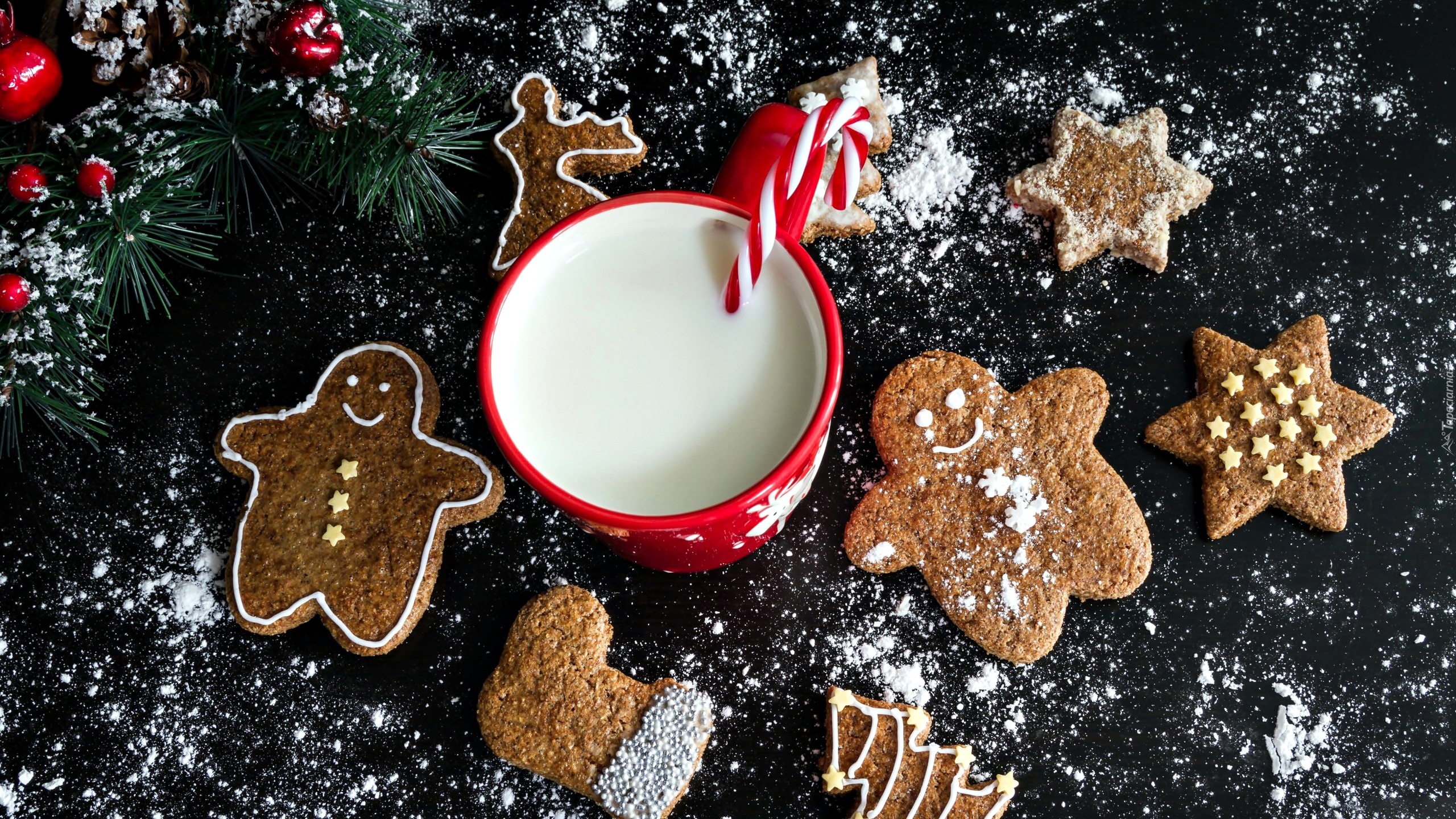 Edytor tapety: Ciasteczka położone obok filiżanki z mlekiem