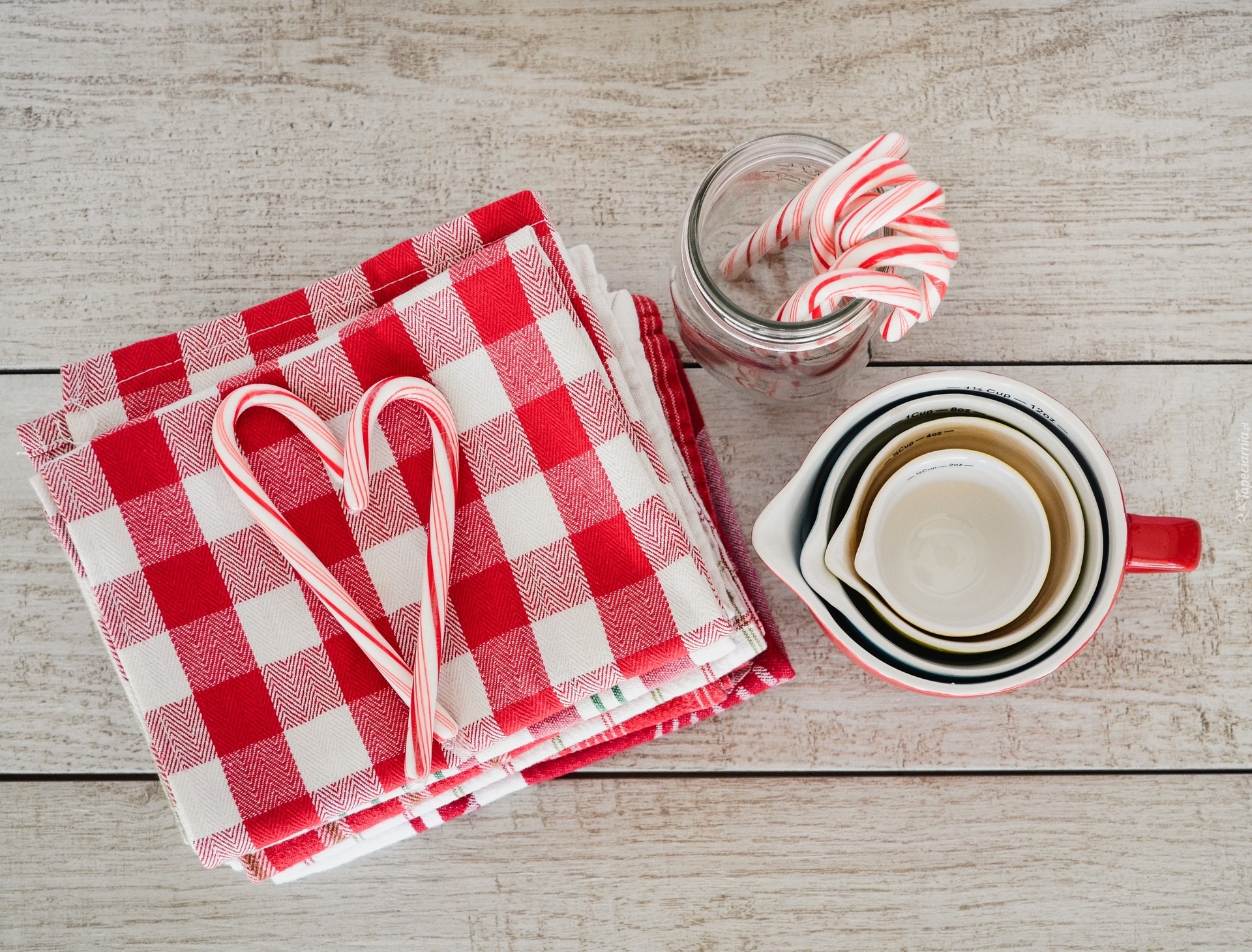 Edytor tapety: Lizaki w słoiku i na ściereczkach obok kubków