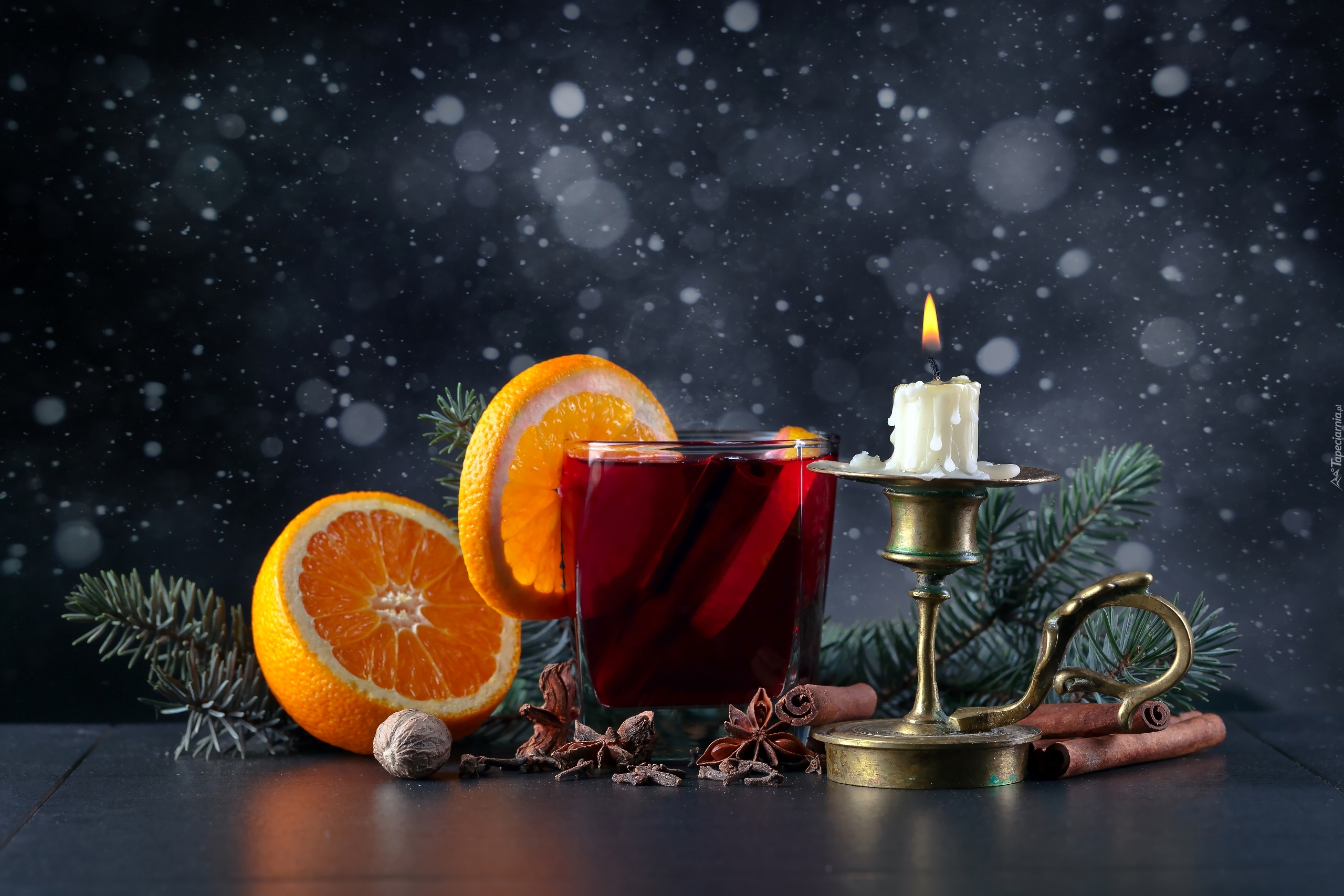 Edytor tapety: Grzane wino przy świecy