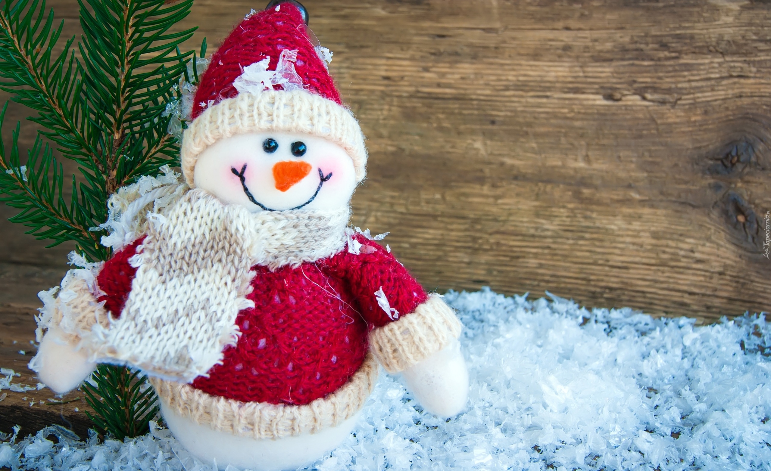 Edytor tapety: Bałwanek przy gałązce na śniegu