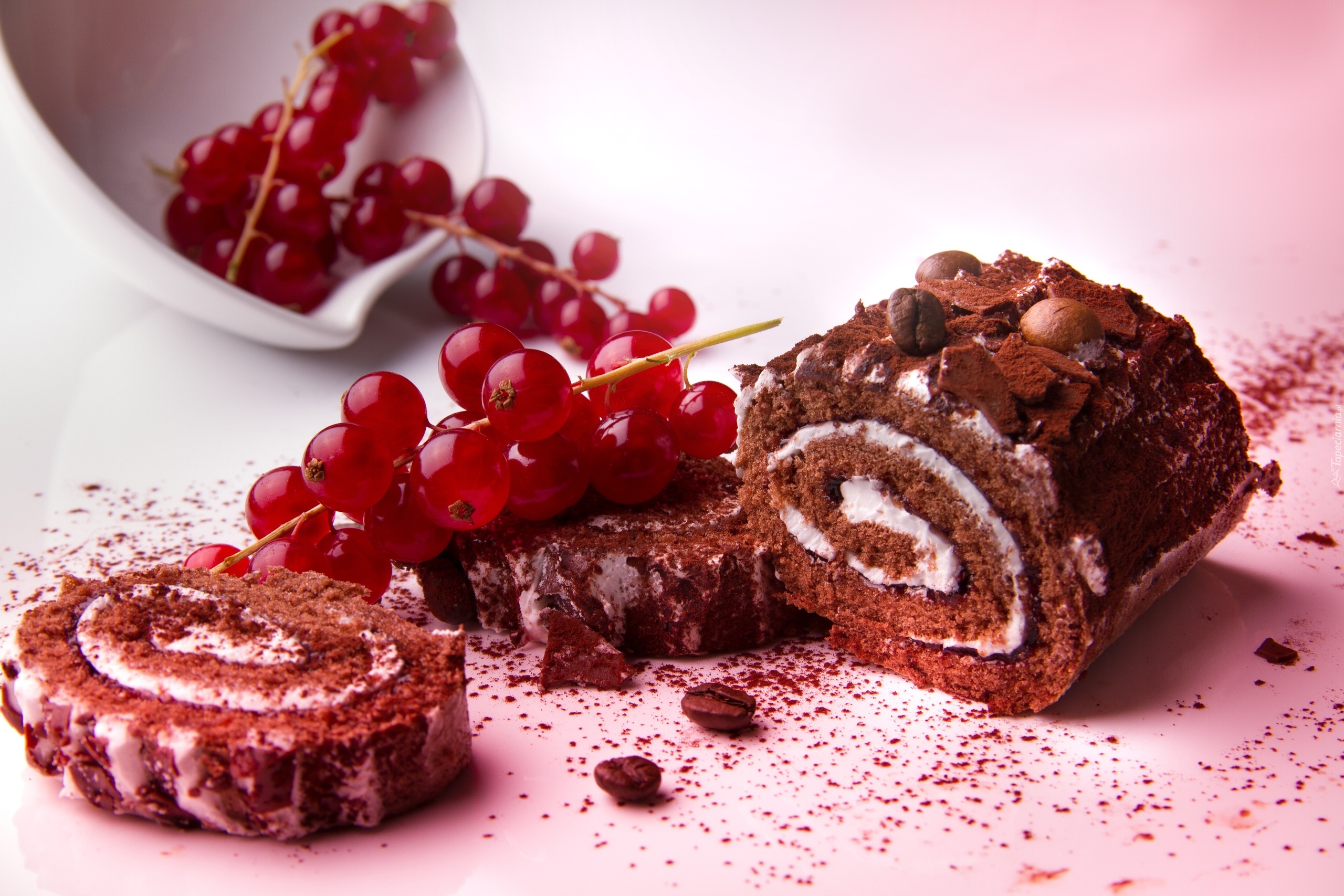 Edytor tapety: Rolada czekoladowa i porzeczki