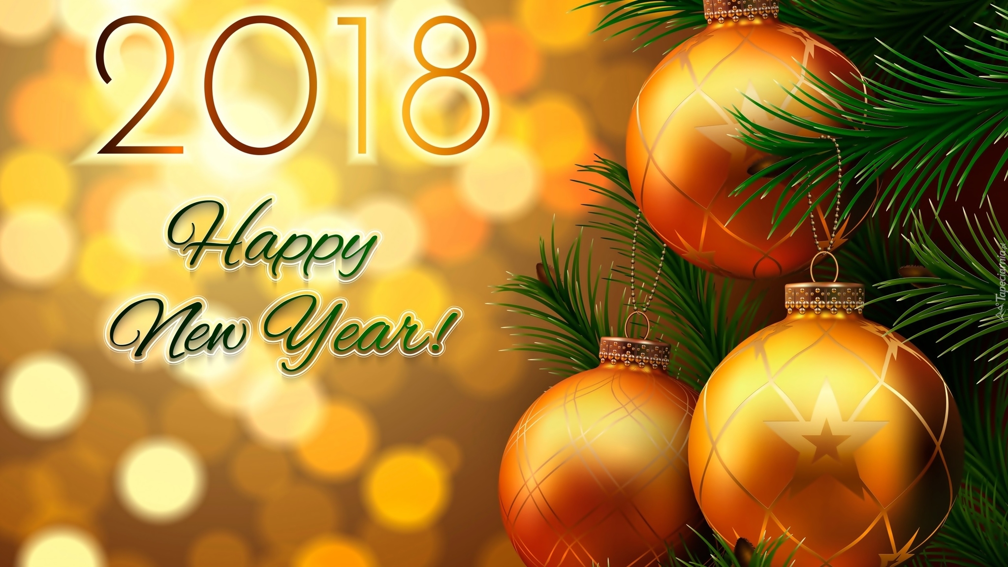 Edytor tapety: Bombki na gałązce obok życzeń noworocznych