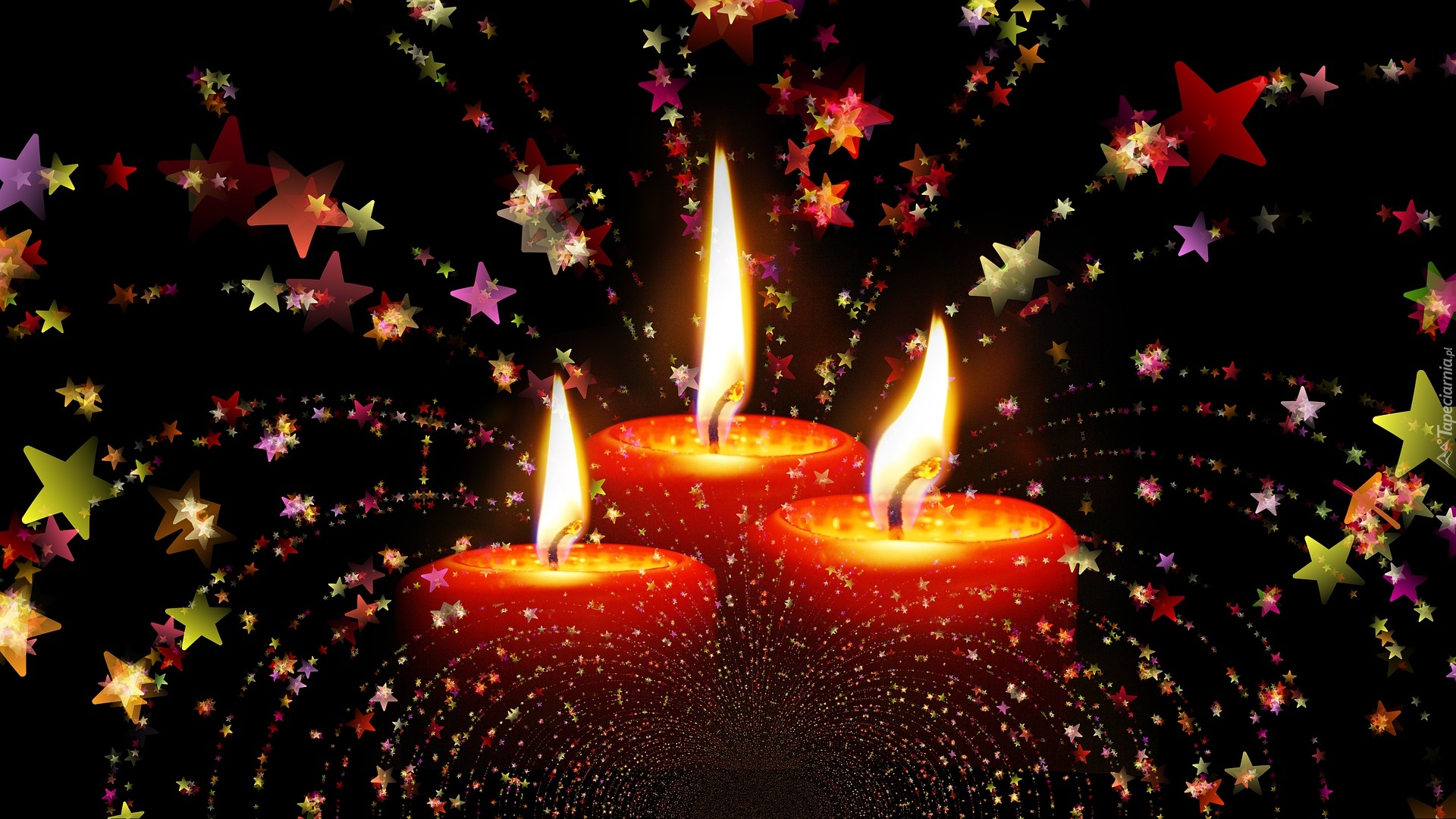 Edytor tapety: Płonące świece na czarnym tle z gwiazdkami
