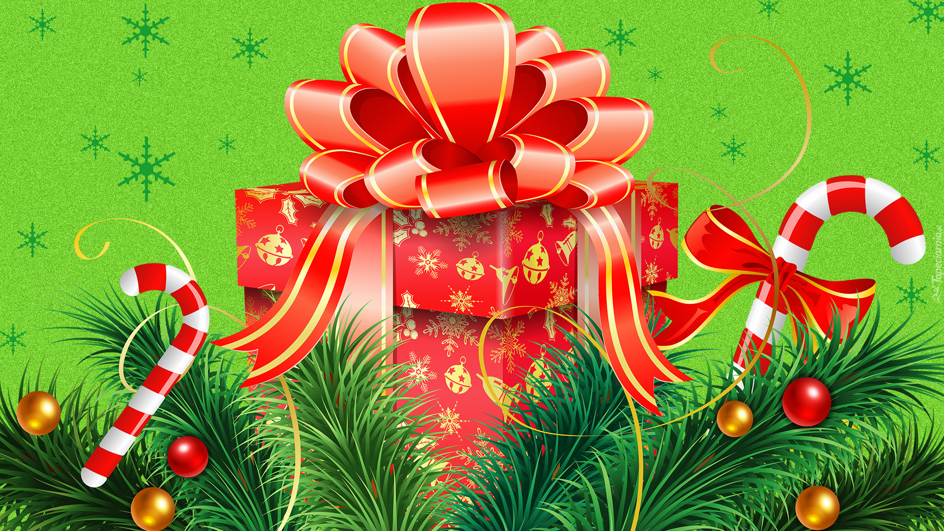 Edytor tapety: Graficzny prezent z kokardą i lizaki