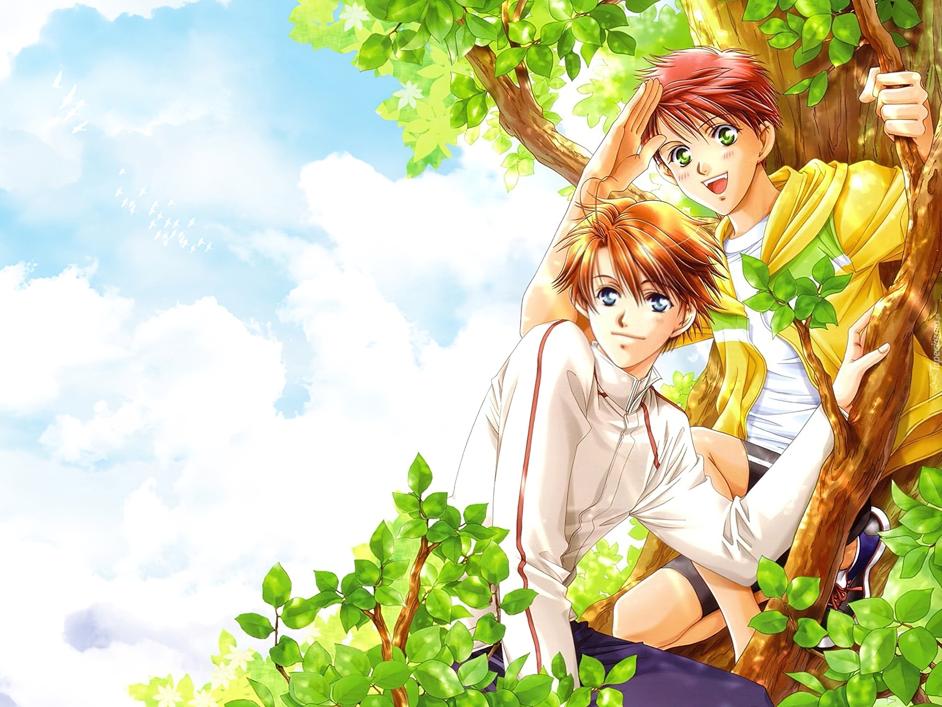 Edytor tapety: Gakuen Heaven, ludzie, facetci, drzewo