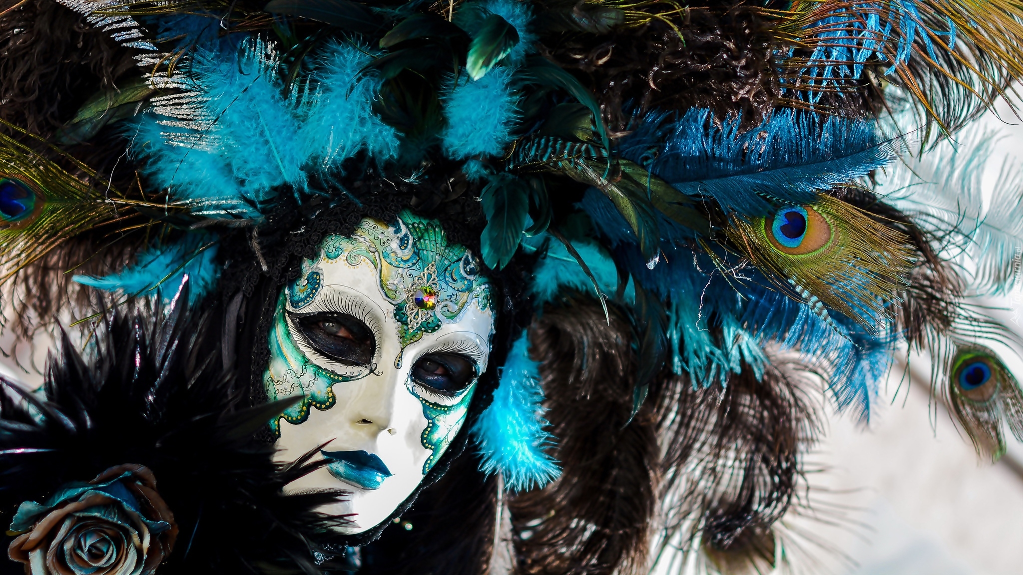 Edytor tapety: Kobieta w weneckiej masce z piórami