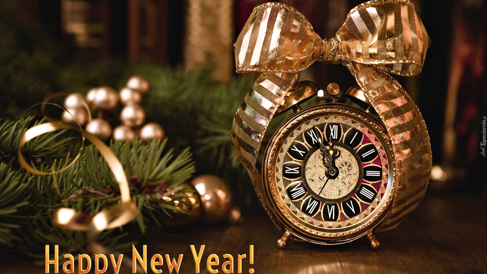 Edytor tapety: Budzik z kokardą i napis noworoczny