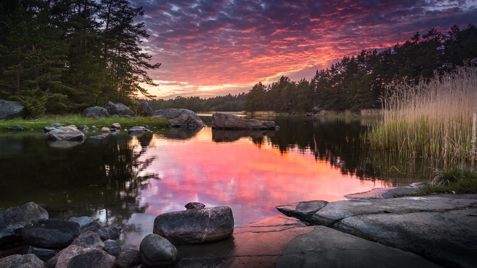 Edytor tapety: Niebo w chmurach odbija się w rzece