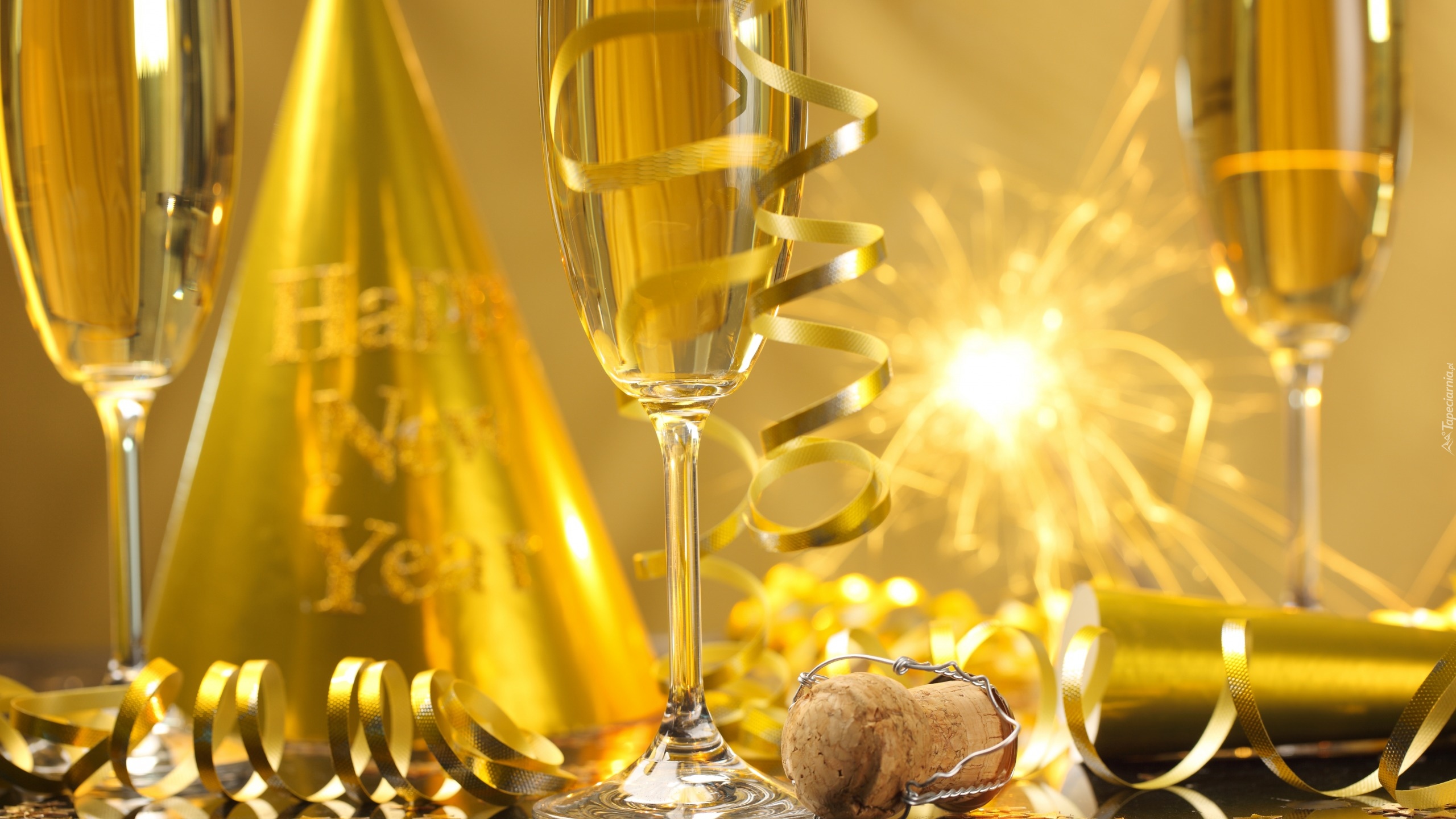 Edytor tapety: Serpentyny pomiędzy kieliszkami z szampanem