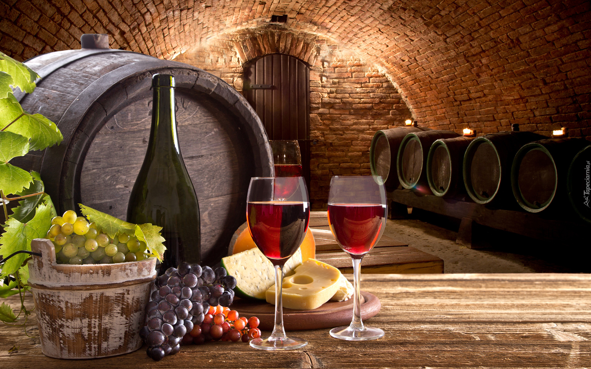 Edytor tapety: Beczki wina w piwnicy